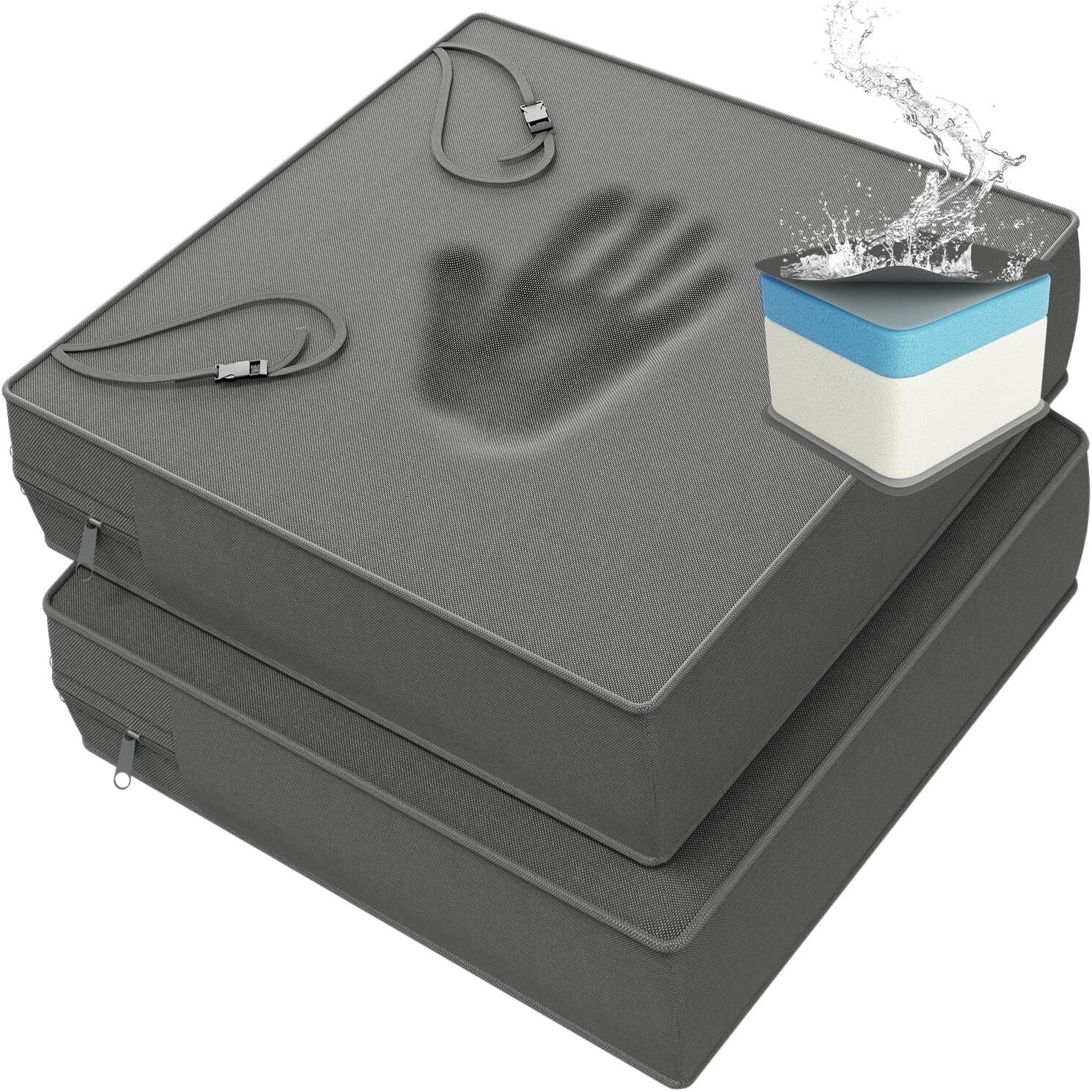 23x23 Memory Foam Outdoor Chair Cushions, Waterproof, 4 Inch Thick, Grey Set of 2