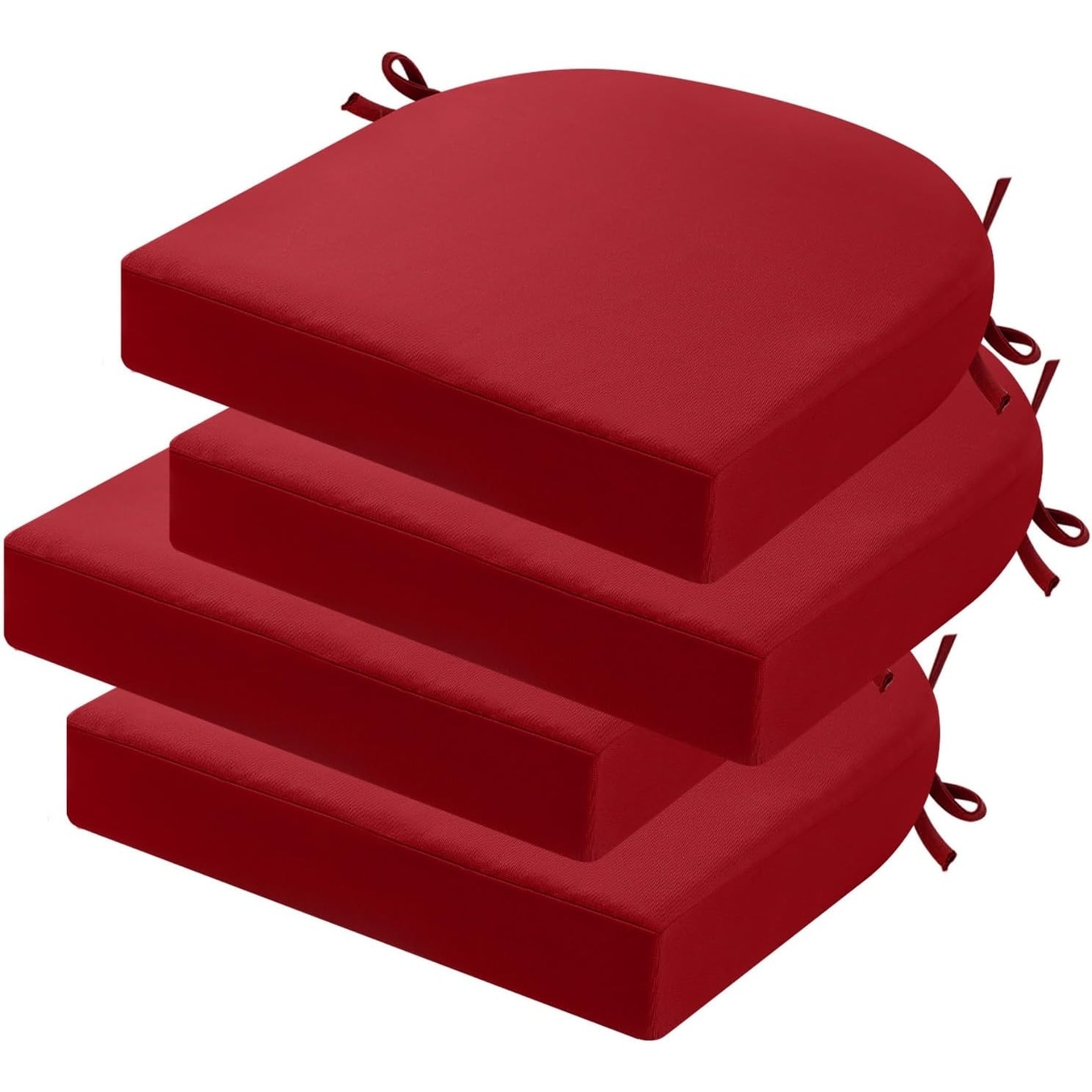Set of 4 Waterproof Outdoor Chair Cushions, 17x17x3 Inches, Red, with Ties and Memory Foam