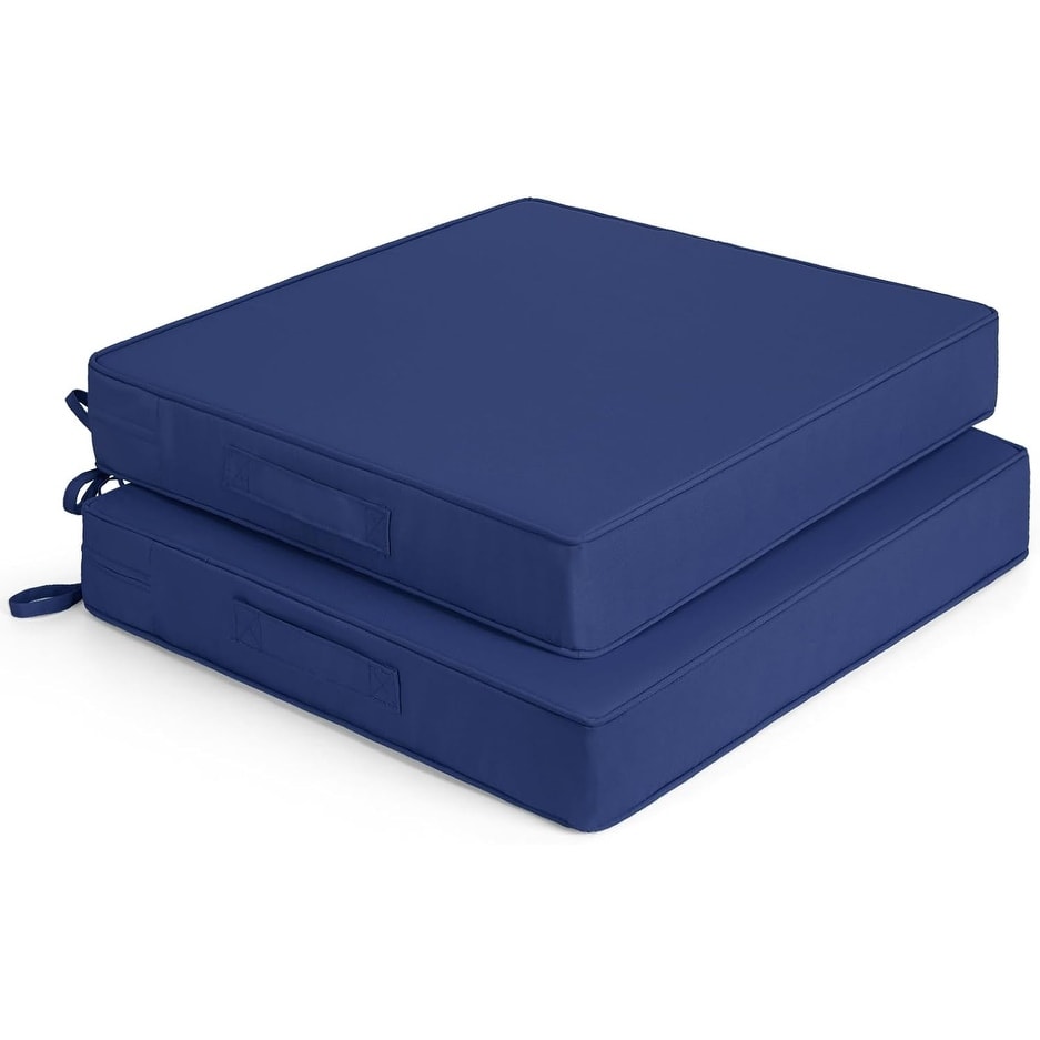 Outdoor Chair Cushions Set of 2, 19x19x3 Waterproof Patio Seat Cushions with Ties & Handle (Blue)
