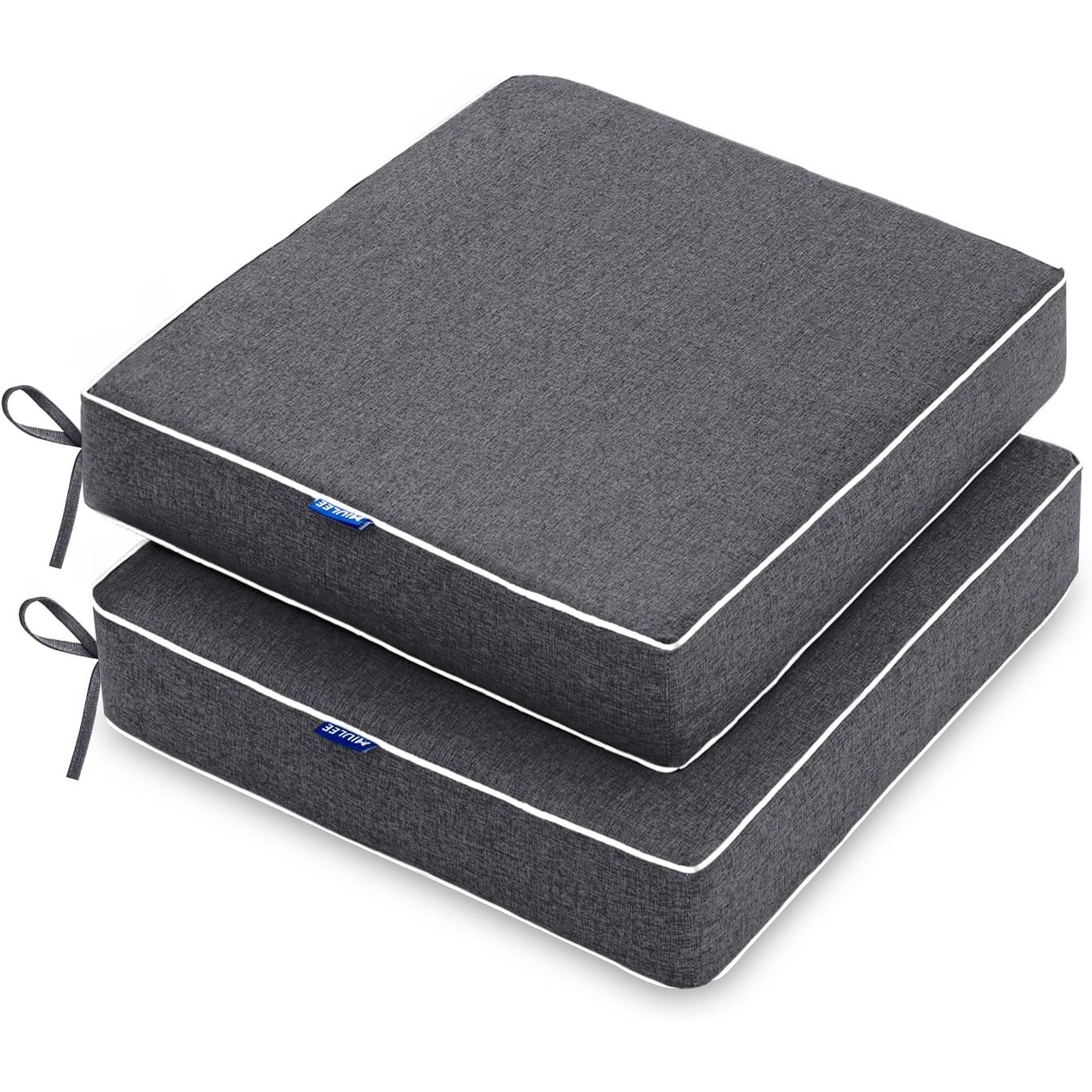 Set of 2 Dark Grey Waterproof Outdoor Chair Cushions with Ties, 19x19x3 Inch, Premium Foam for Patio Furniture