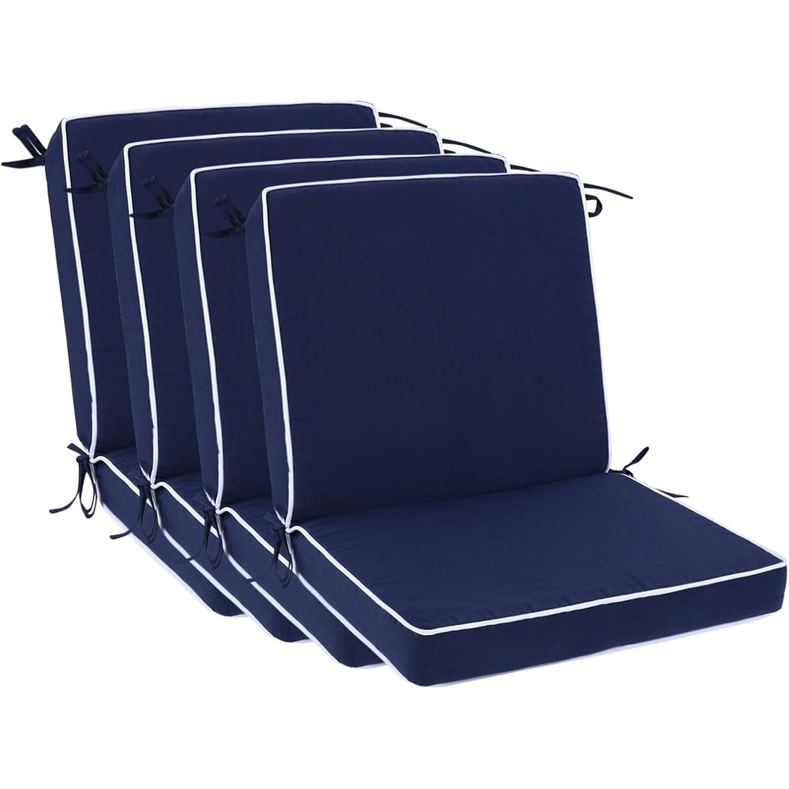 Set of 4 Water Resistant Outdoor Patio Chair Cushions with Ties, 20x17 Inch All Weather Seating Cushions