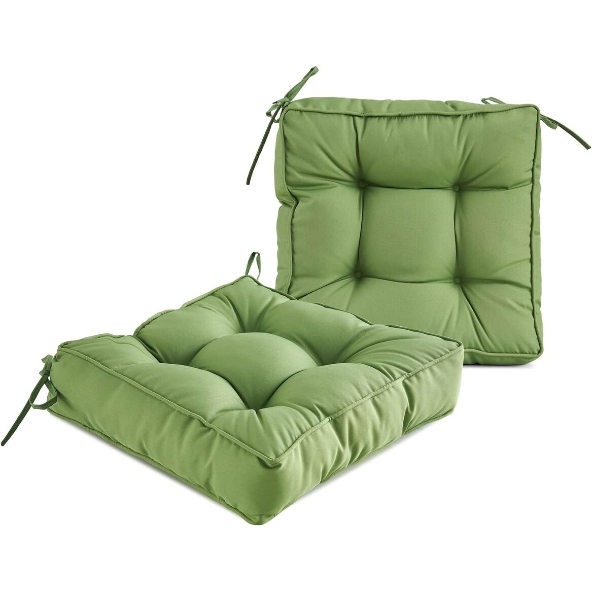 Square Thick Tufted Outdoor Seat Cushion Set of 2, 19x19x5 Inches, Water Resistant with Ties for Patio Chairs, Kale Green