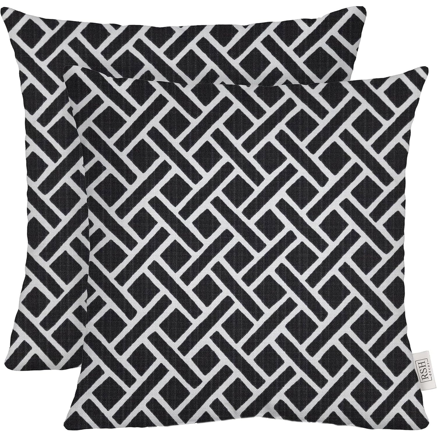 Set of 2 All Weather Square Throw Pillows, Reversible 17x17 Inch, Matte Black Geometric Design