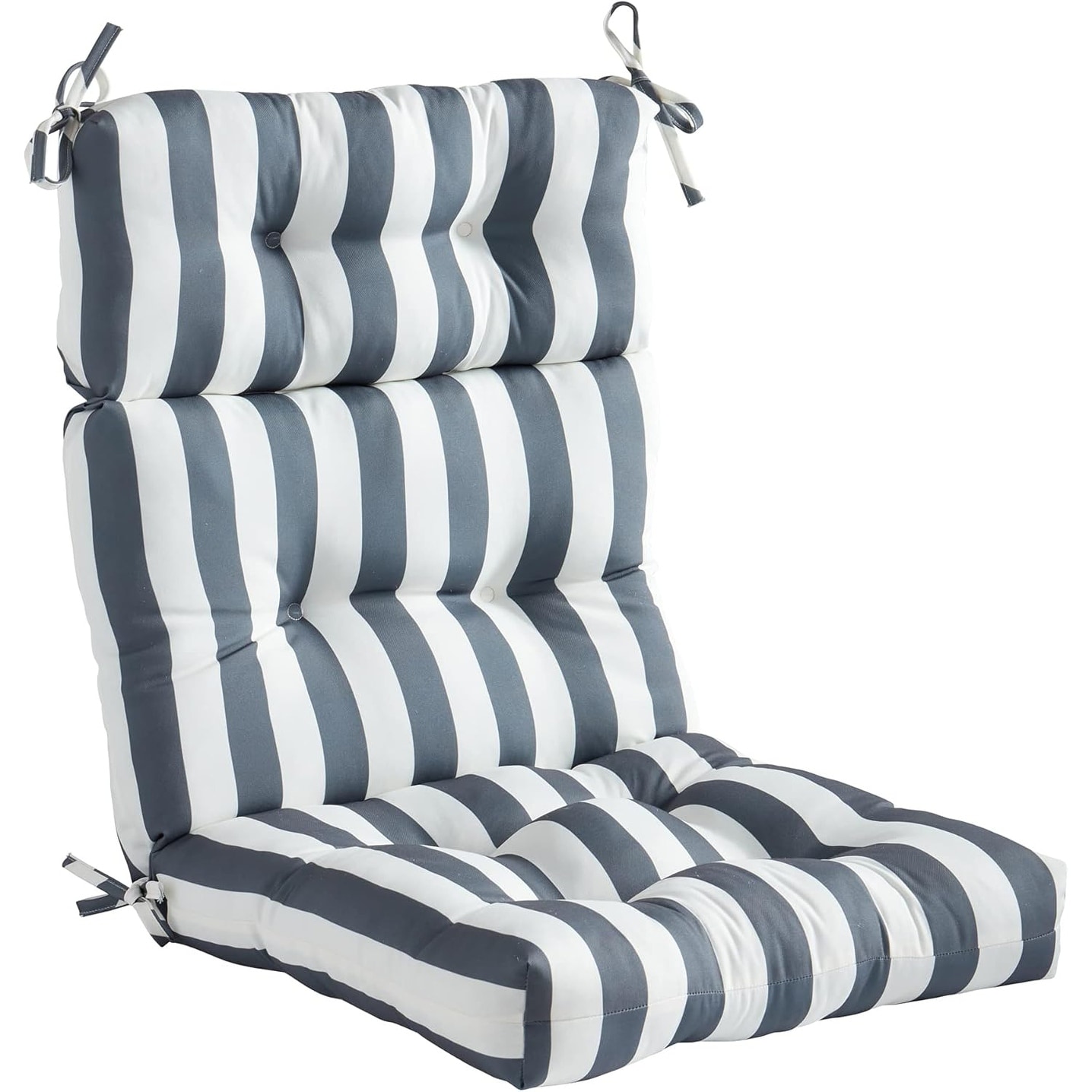 44 x 22-inch High Back Outdoor Chair Cushion with Ties, Gray Stripe - Water & Sun Resistant