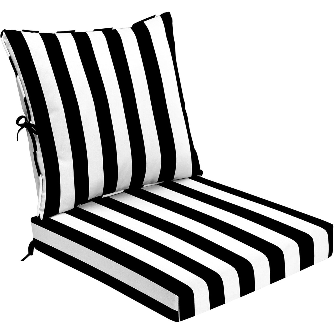 24x24 Inch Outdoor Deep Seat Cushion Set, Rain-Proof, Fade Resistant, Black Cabana Stripe