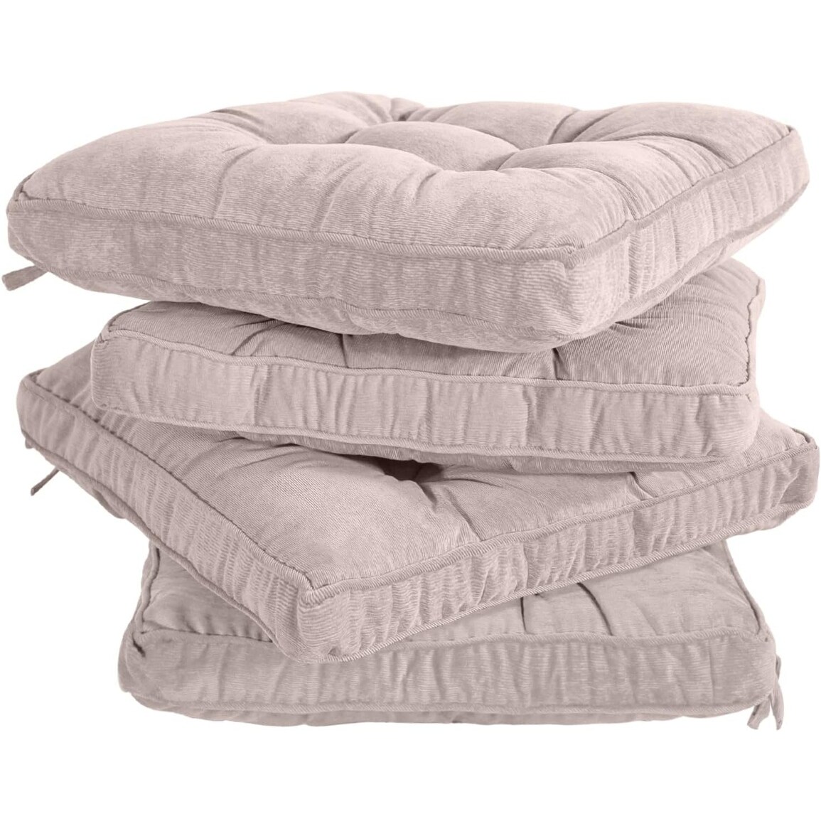 18x18 Inch Square Outdoor Chair Cushions with Ties, Set of 4, Beige, Comfortable and Durable