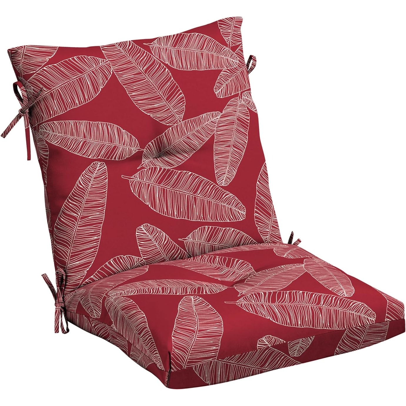 Modern Water Repellent Tufted Outdoor Dining Chair Cushion, Red Leaf Palm