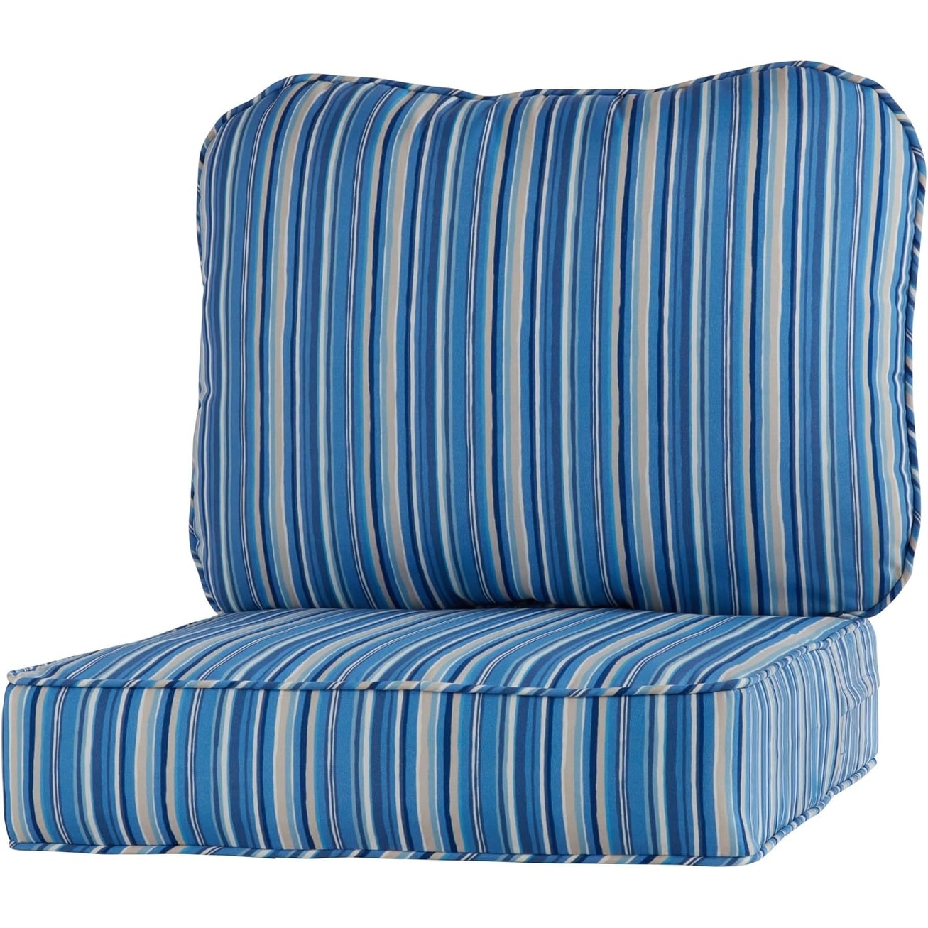 Reversible 2-Piece Deep Seat Cushion Set, Steel Blue Stripe, Universal Fit, Heavy-Duty Polyester, Eco-Friendly