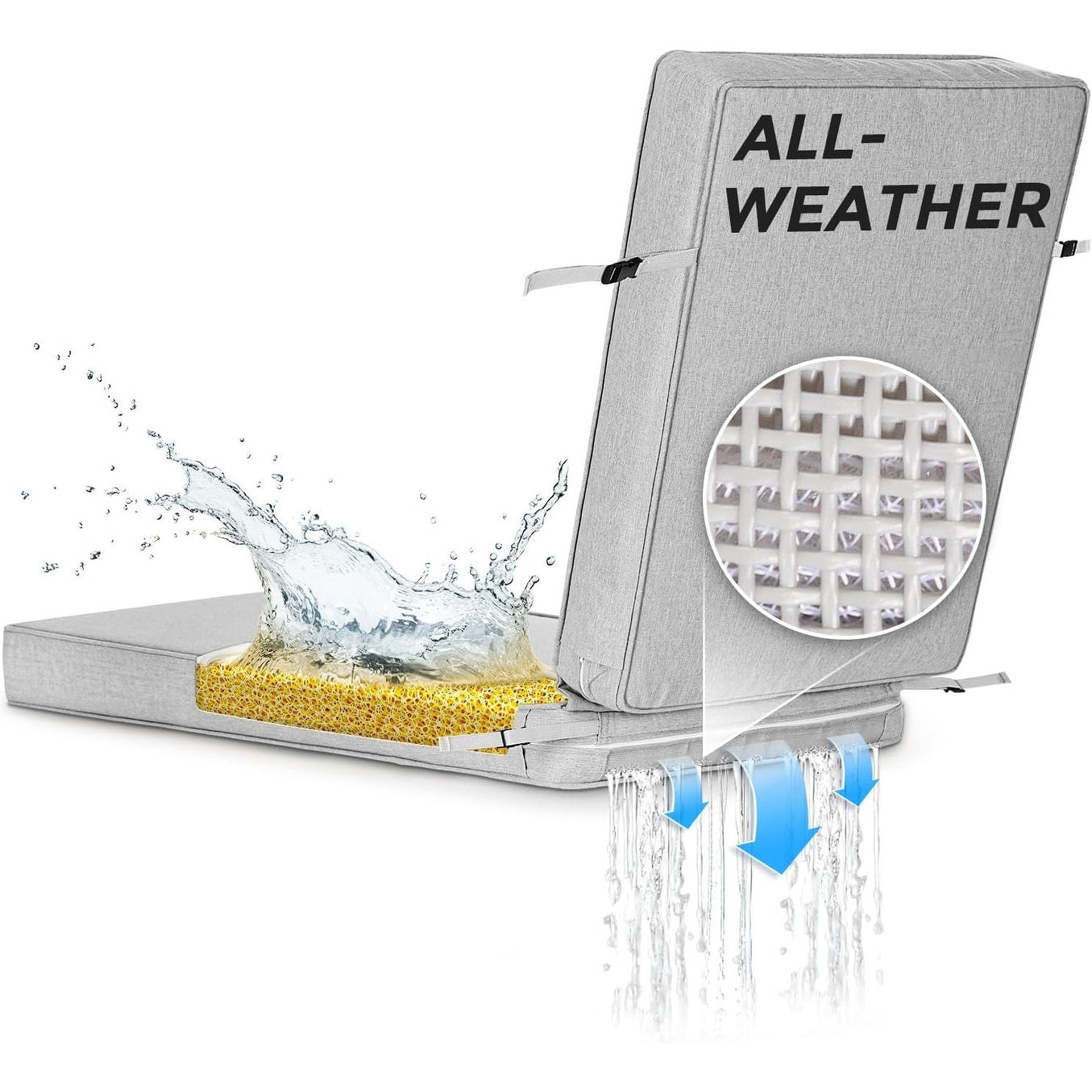 All-Weather Water-Resistant Outdoor Chaise Lounge Cushion with Adjustable Buckle Ties, 80x26 Inch, Heather Grey