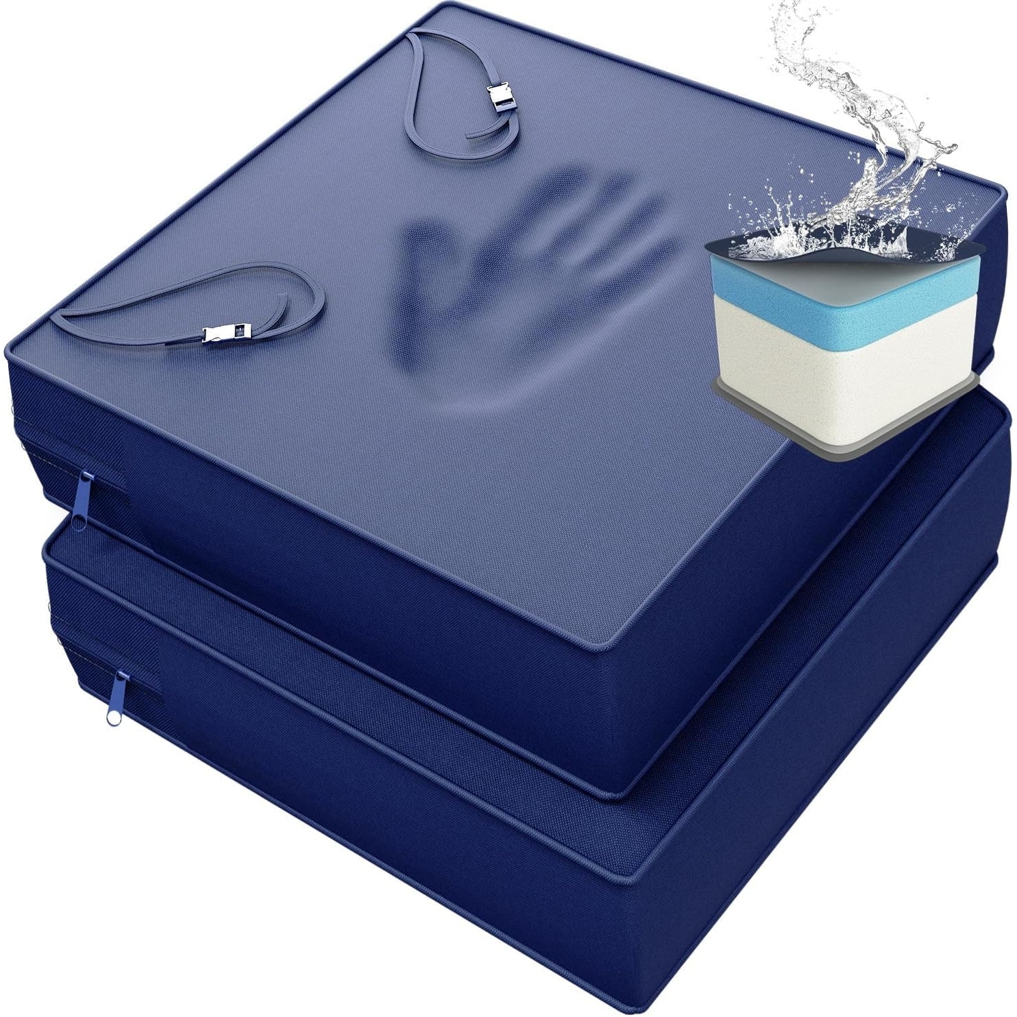 22x22 Inch Memory Foam Outdoor Chair Cushion, Waterproof, 4 Inch Thick, Set of 2, Navy Blue