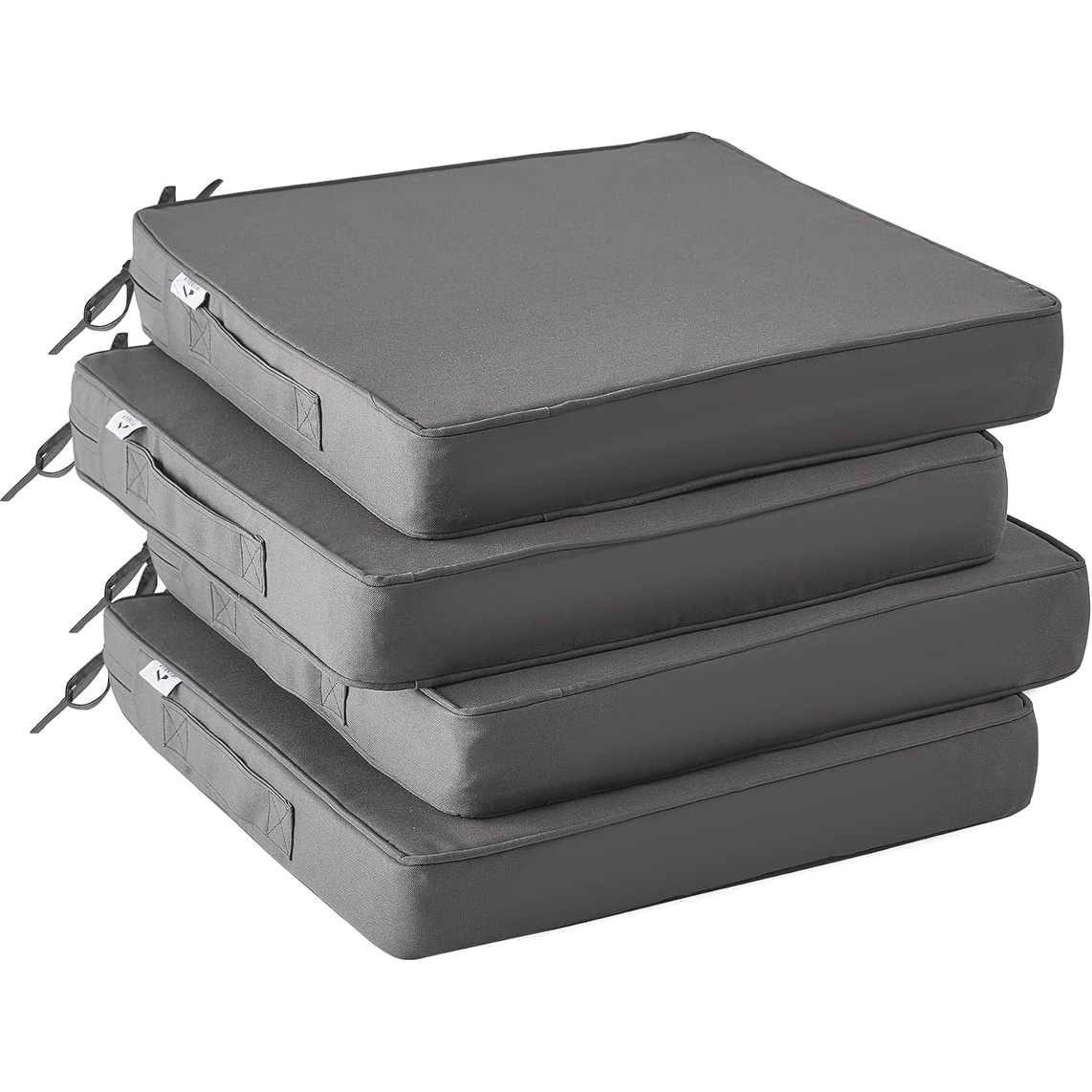 Waterproof Outdoor Chair Cushions Set of 4 with Ties and Handle, 19x19 Inch Thick Patio Seat Cushions, Dark Grey