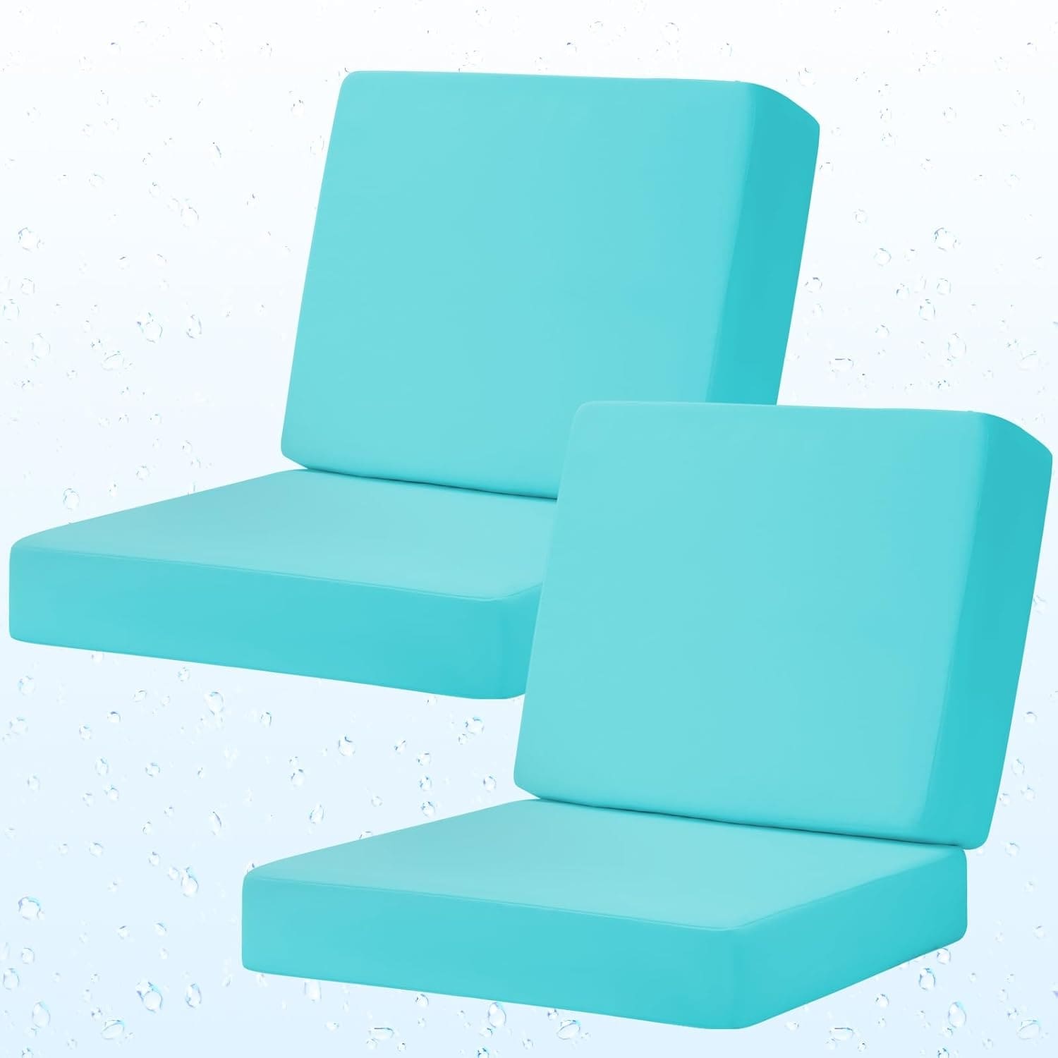 Set of 2 Waterproof UV-Resistant Outdoor Deep Seat Cushions with Ties, 24x24 Inch, Teal