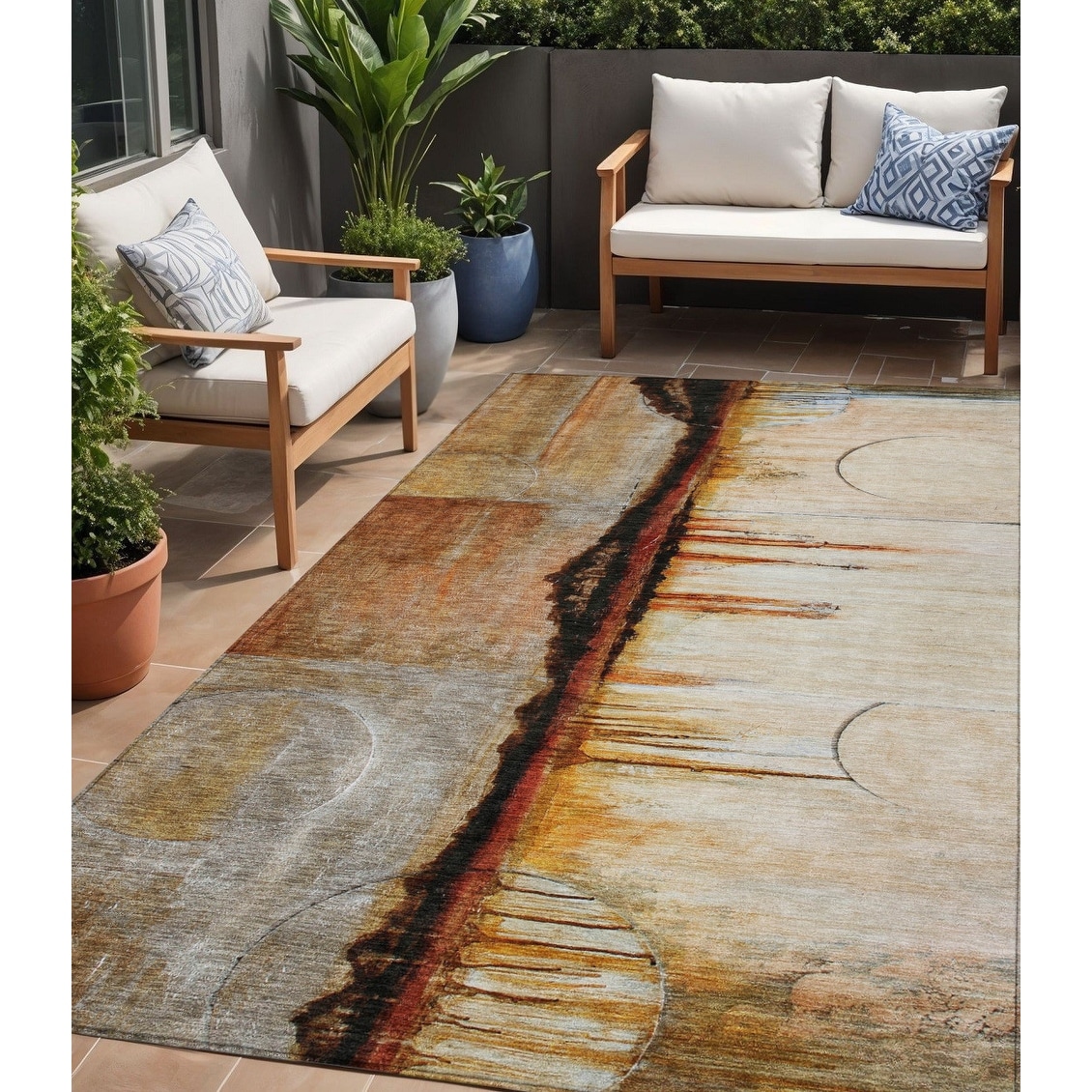 5' X 8' Rust And Charcoal Abstract Washable Indoor Outdoor Area Rug - 5' x 8'