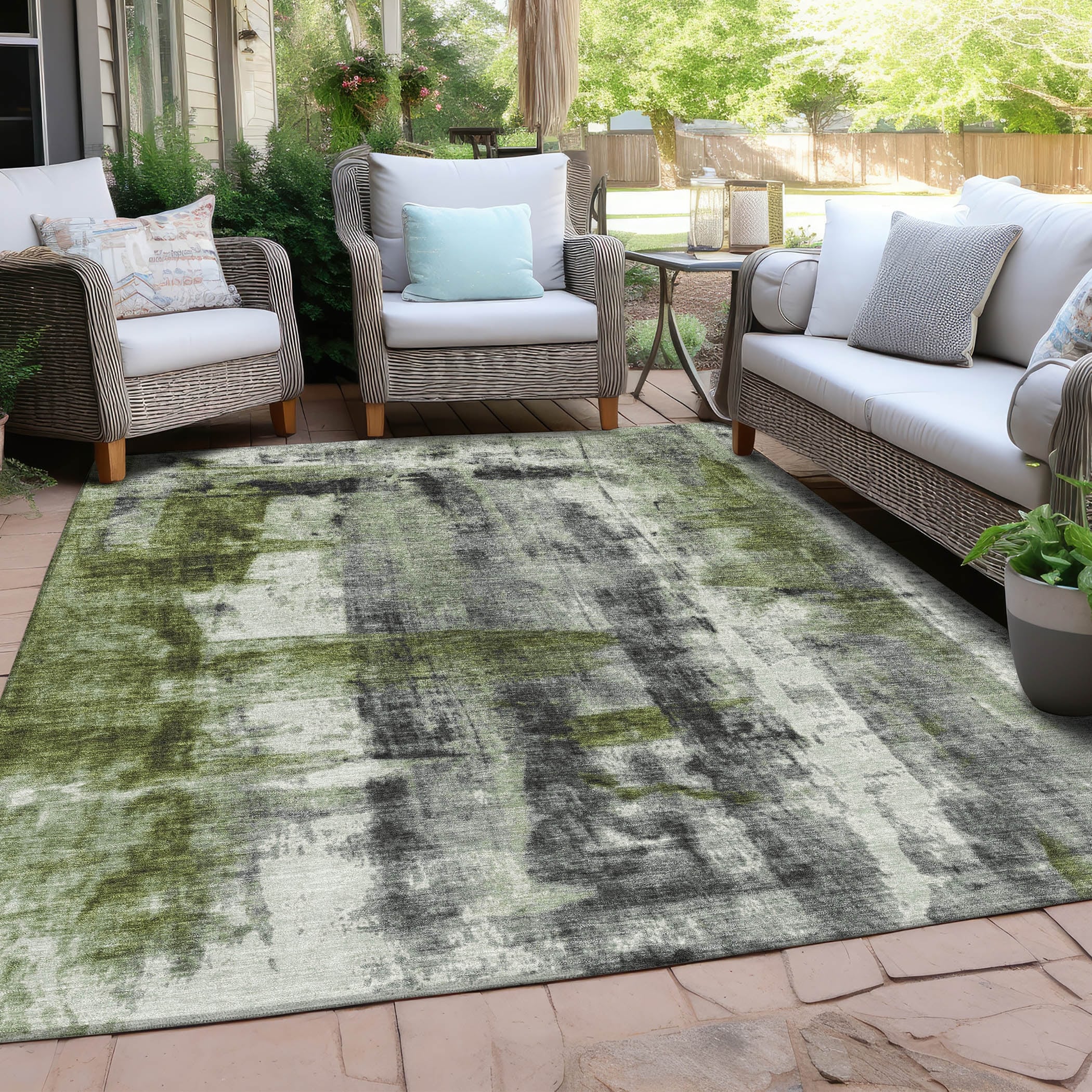 Machine Washable Indoor/Outdoor Modern Zen Chantille Rug