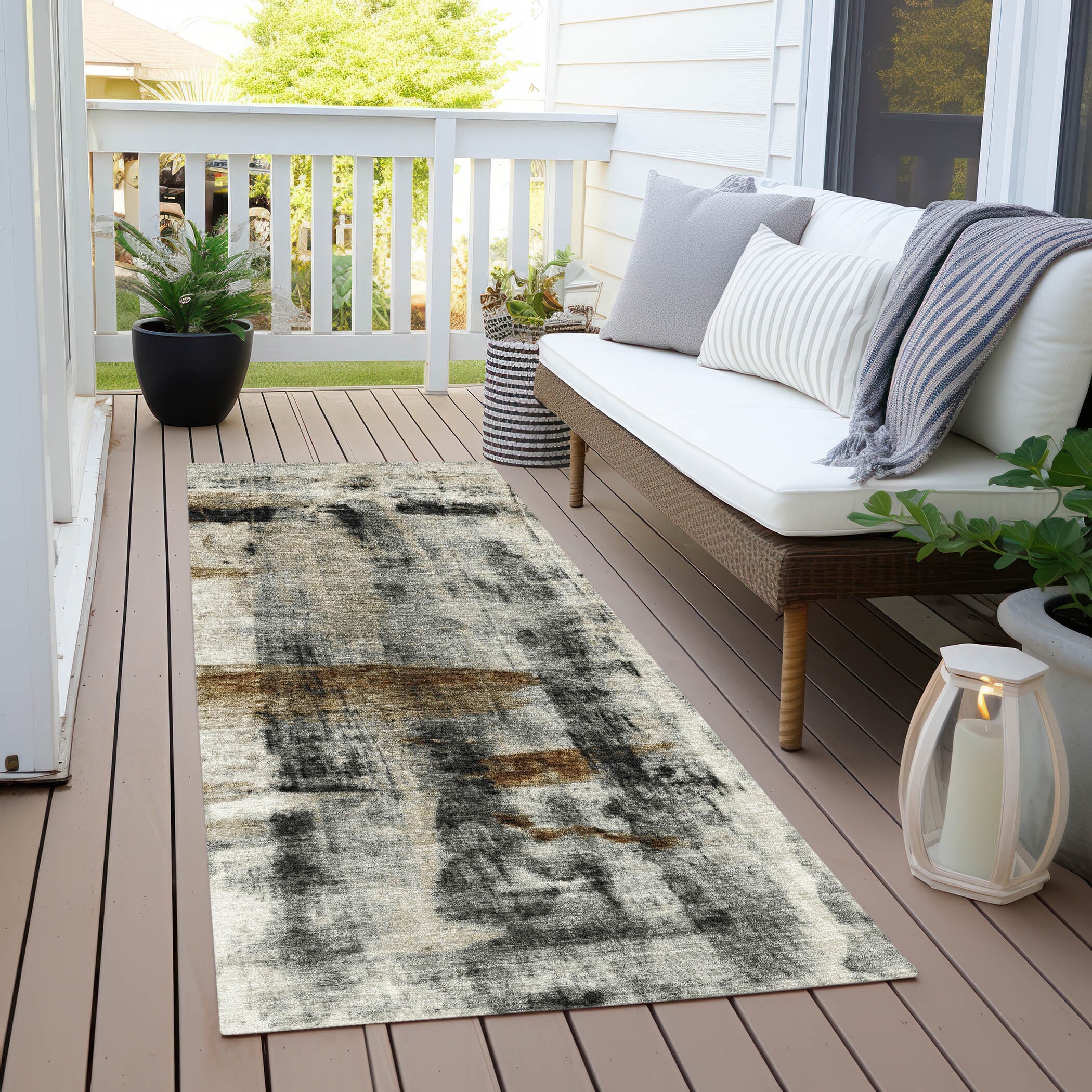 Machine Washable Indoor/Outdoor Modern Zen Chantille Rug