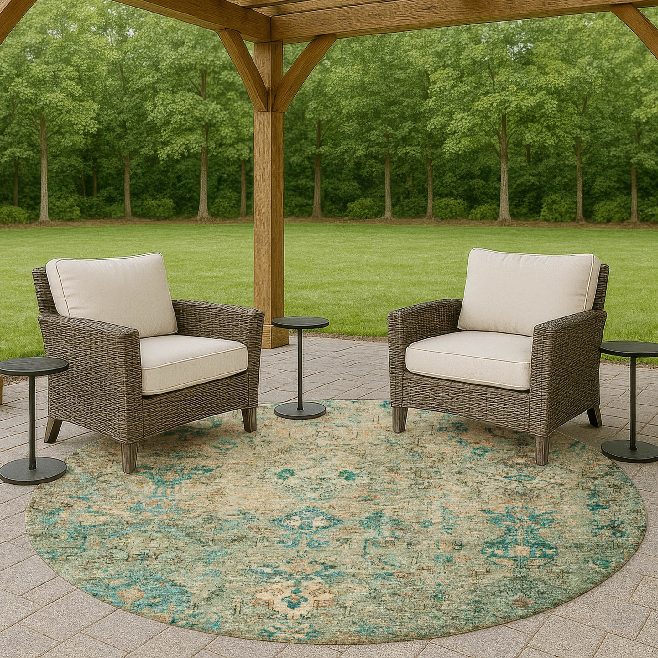 Outdoor Patio Rug Waterproof Reversible Carpet Vintage Boho Medallion Rug Plastic Straw Rug