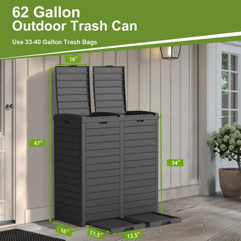 Outdoor Black Galvanized Steel Garbage Bin Storage Shed - Holds 3 Trash Cans - 94.48" x 31.49" x 48.03"