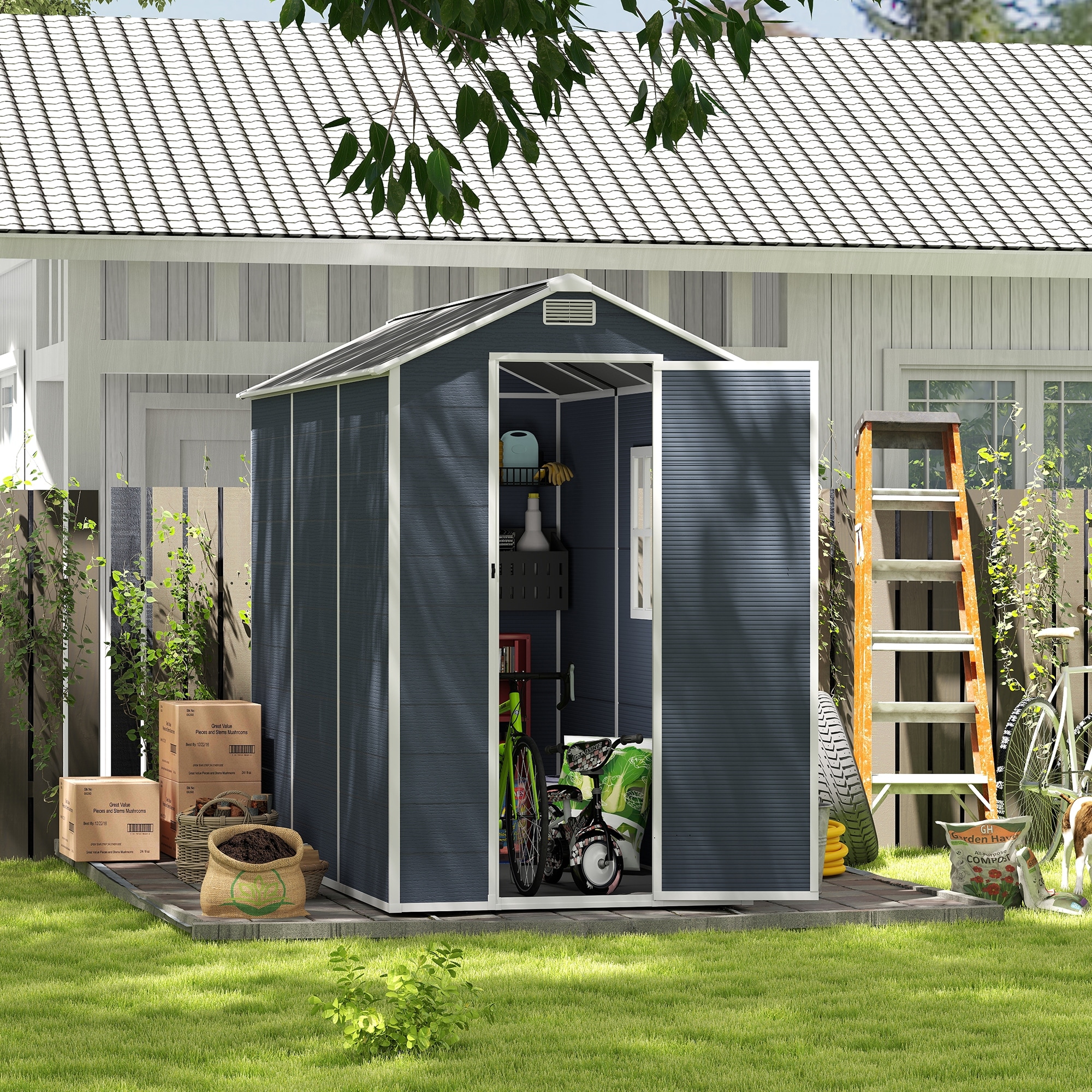 Weatherproof Garden Shed Galvanized Steel Storage Shed, Tool Shed with Double Doors & Punched Vents