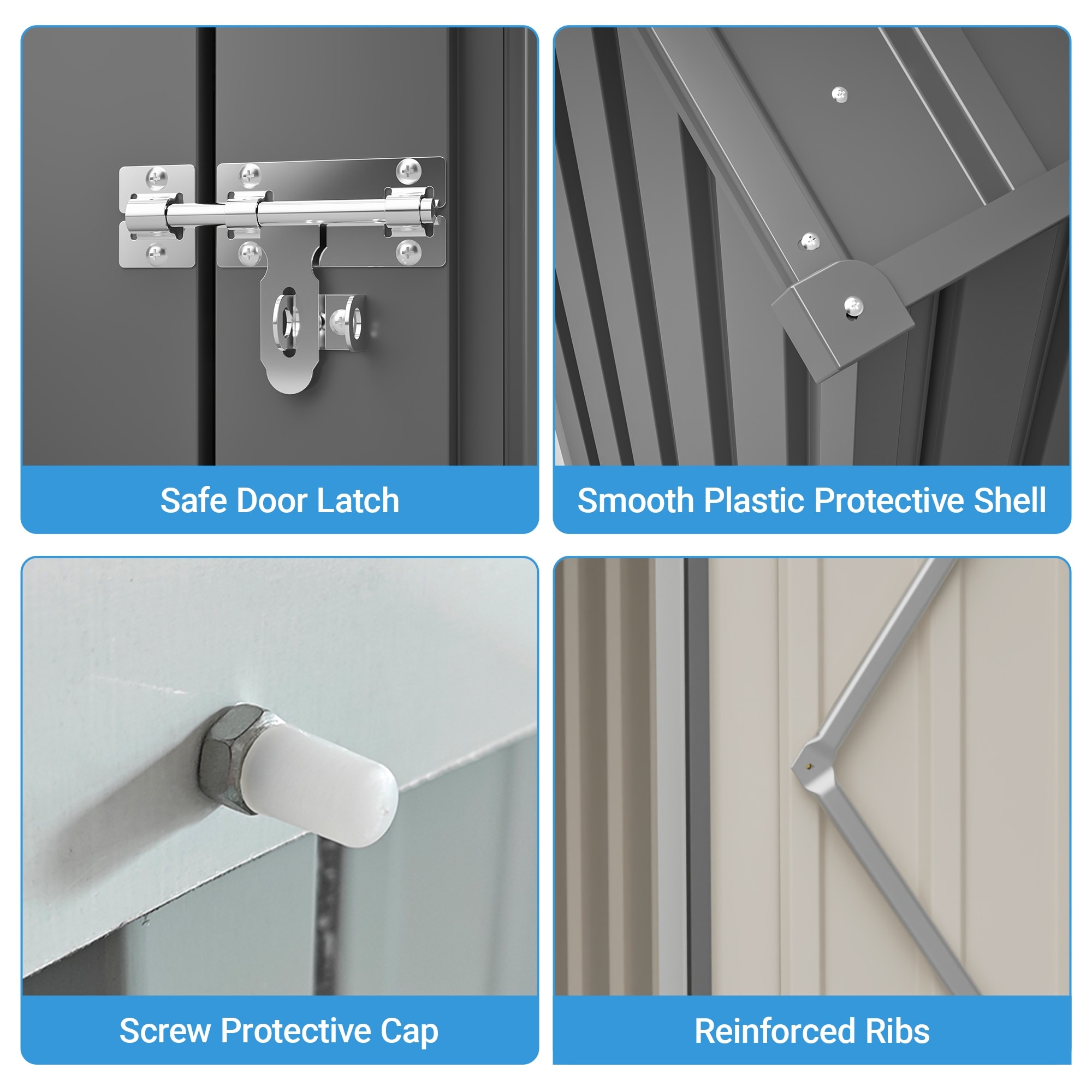 Corrosion-resistant Outdoor Metal Garden Shed with Double Lockable Door Waterproof Storage Shed Tool Shed Pet Shed, Air Vents