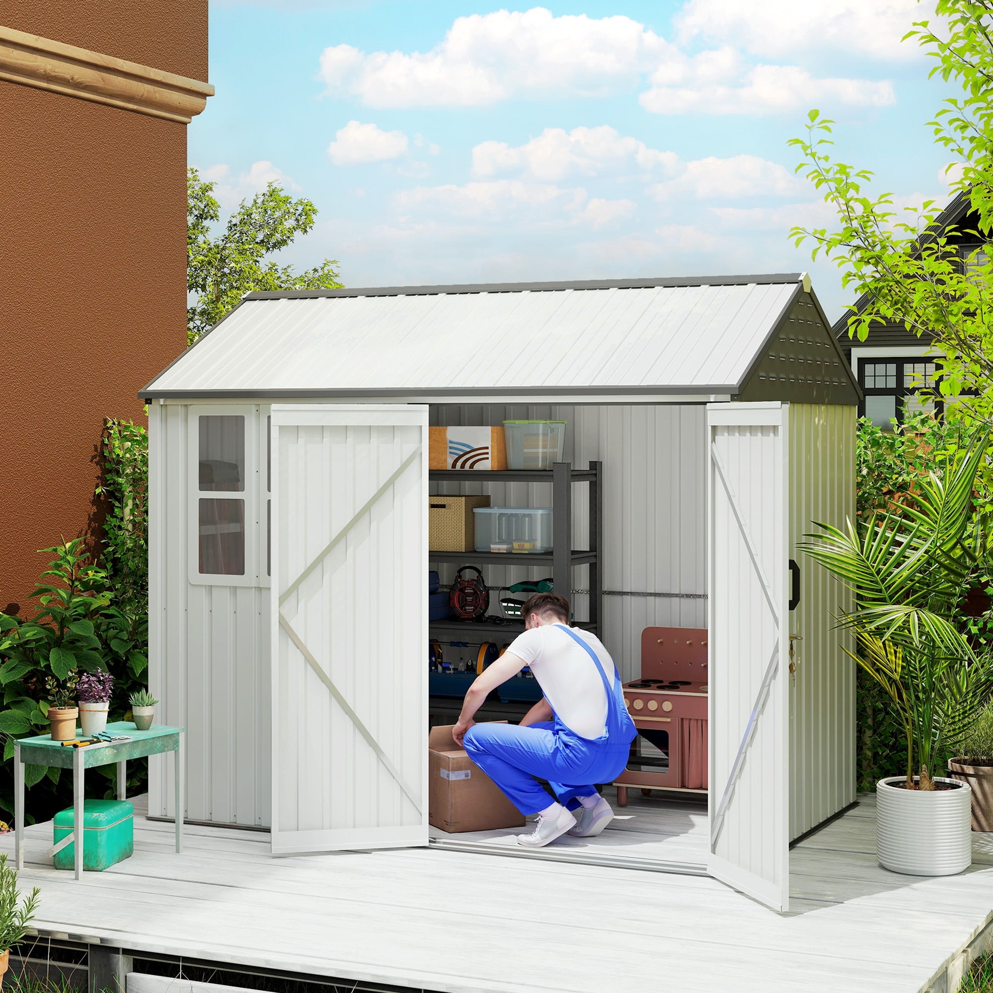 8x6 FT Outdoor Galvanized Steel Storage Shed with Lockable Door, Vents