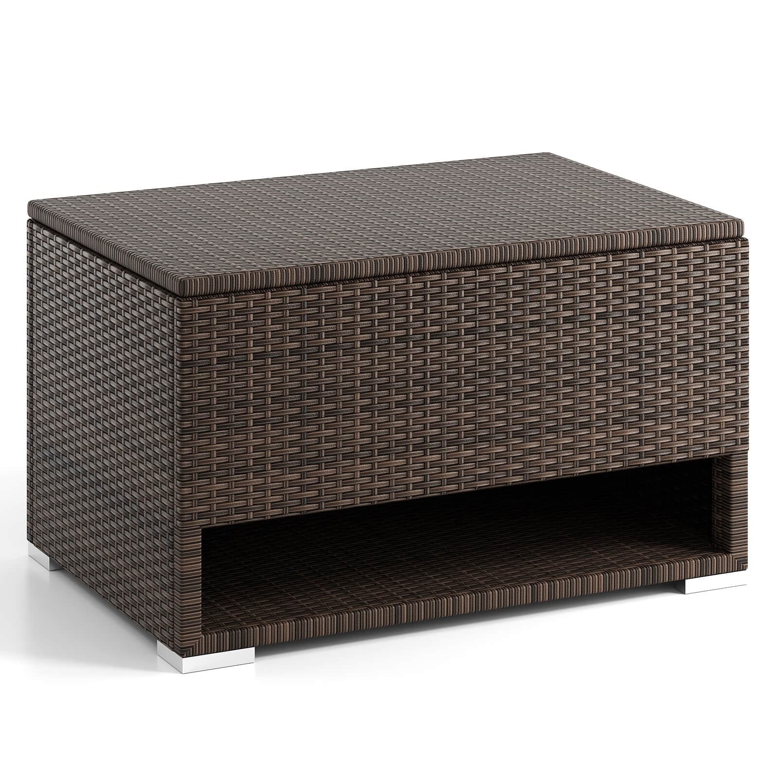 Brown Resilient Resin Storage Deck Box with Hydraulic Lid and Side Handle and for Home Terrace and Garden