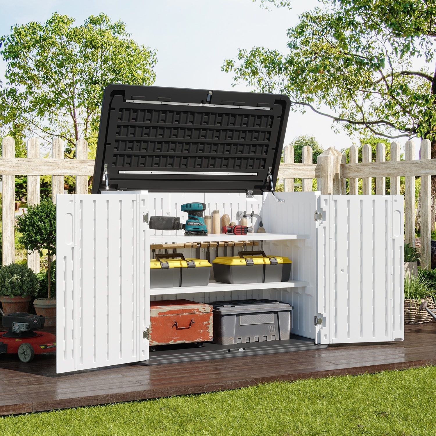 Outdoor Storage Cabinet 52.5 x 30 x 40" Horizontal Resin Shed With Floor 25 Cu.Ft