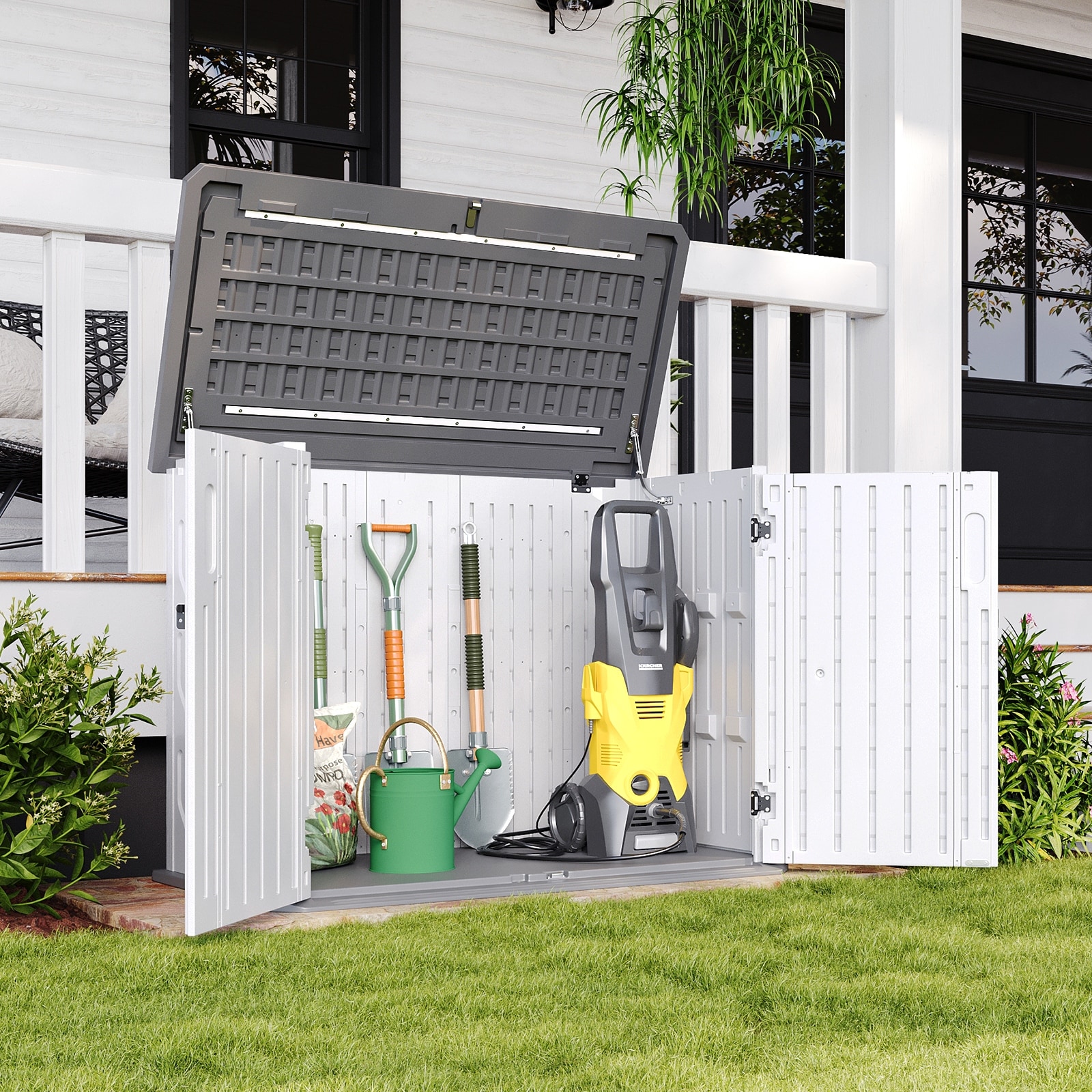 Outdoor Storage Cabinet 52.5 x 30 x 40" Horizontal Resin Shed With Floor 25 Cu.Ft