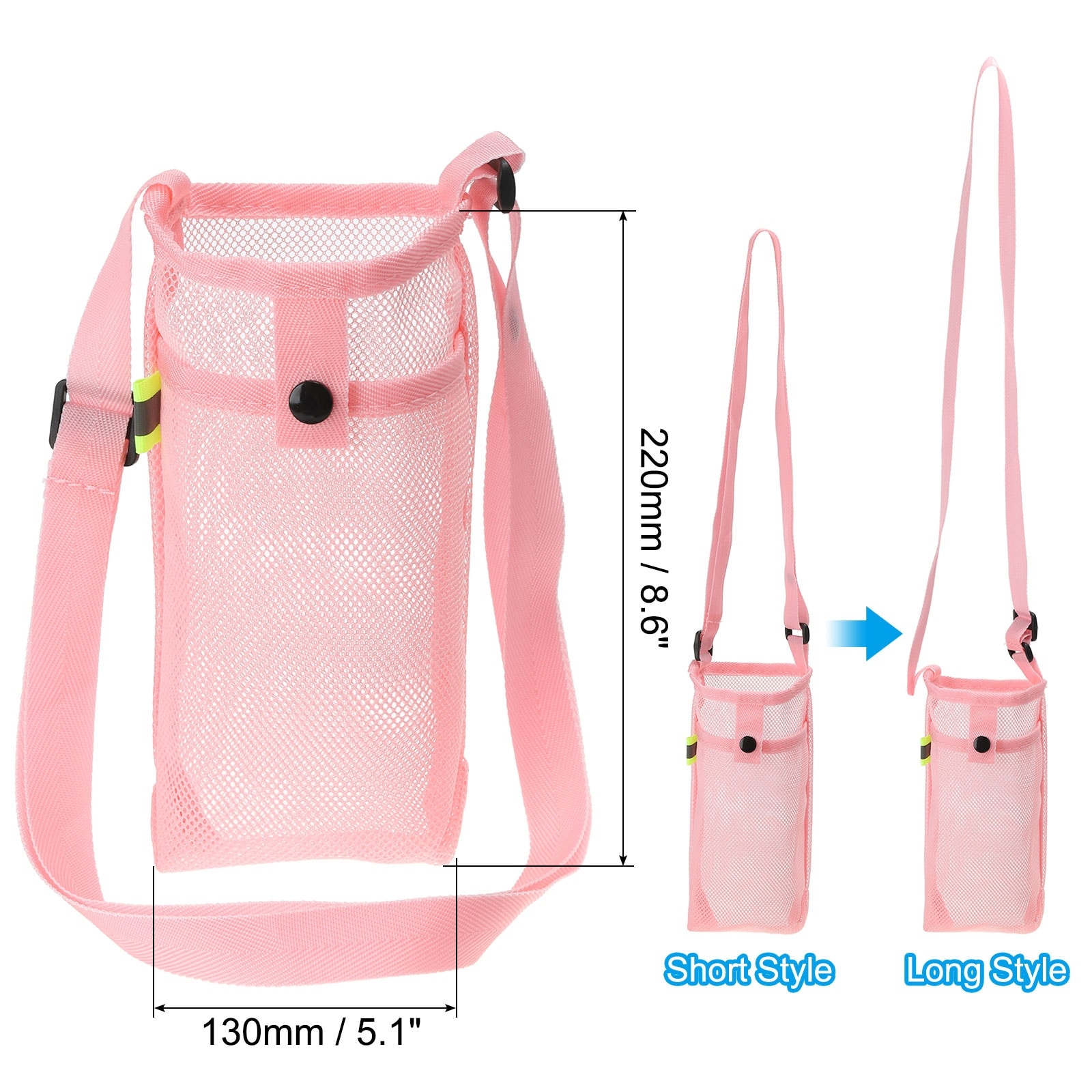 Water Bottle Bag, Mesh Portable Bottle Holder Carrier Adjustable Shoulder Strap for Sports Hiking Camping