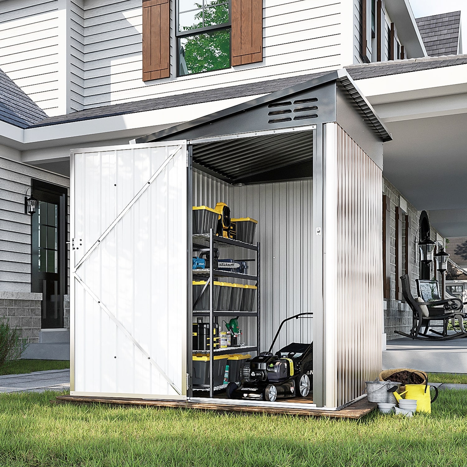 Outdoor Metal Storage Shed -Sloping Roof Design