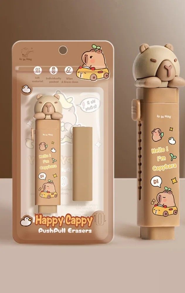 Capybara Erasers Set Cartoon Design, Retractable Eraser For Drawing Exams, Kids Students Back To School Stationery Fun 1pcs Light Brown