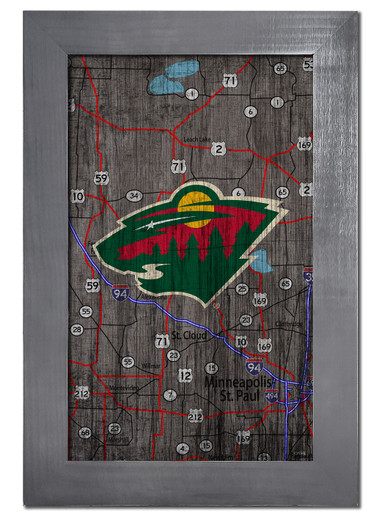 Minnesota Wild 11" x 19" City Map Framed Sign