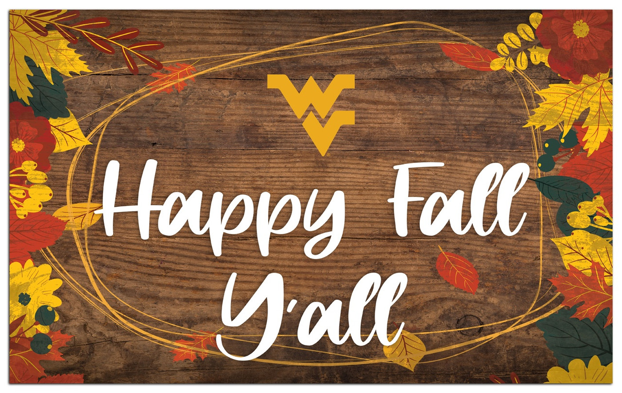 West Virginia Mountaineers Happy Fall Y'all 11" x 19" Sign