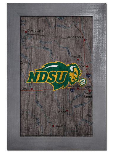 North Dakota State Bison 11" x 19" City Map Framed Sign