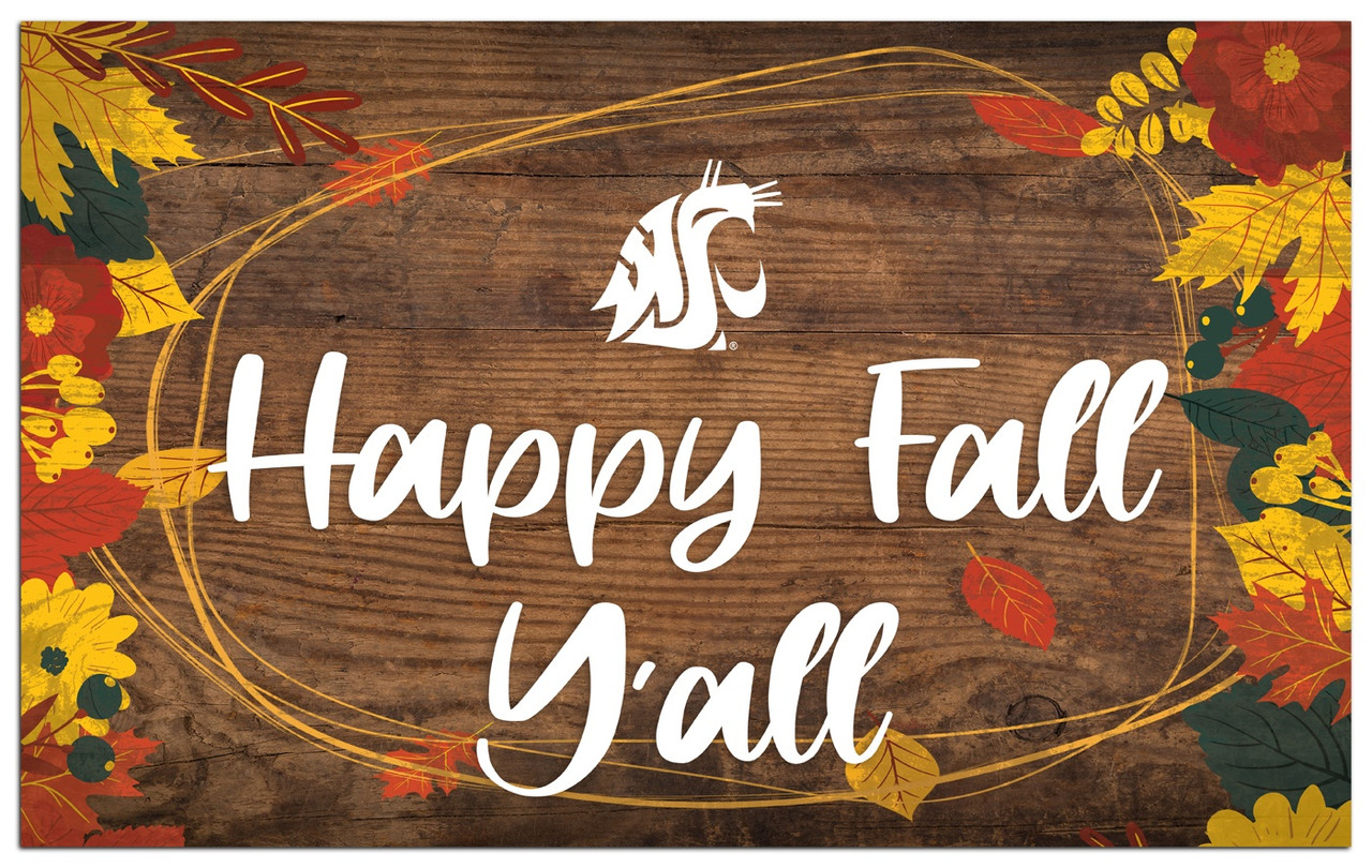 Washington State Cougars Happy Fall Y'all 11" x 19" Sign