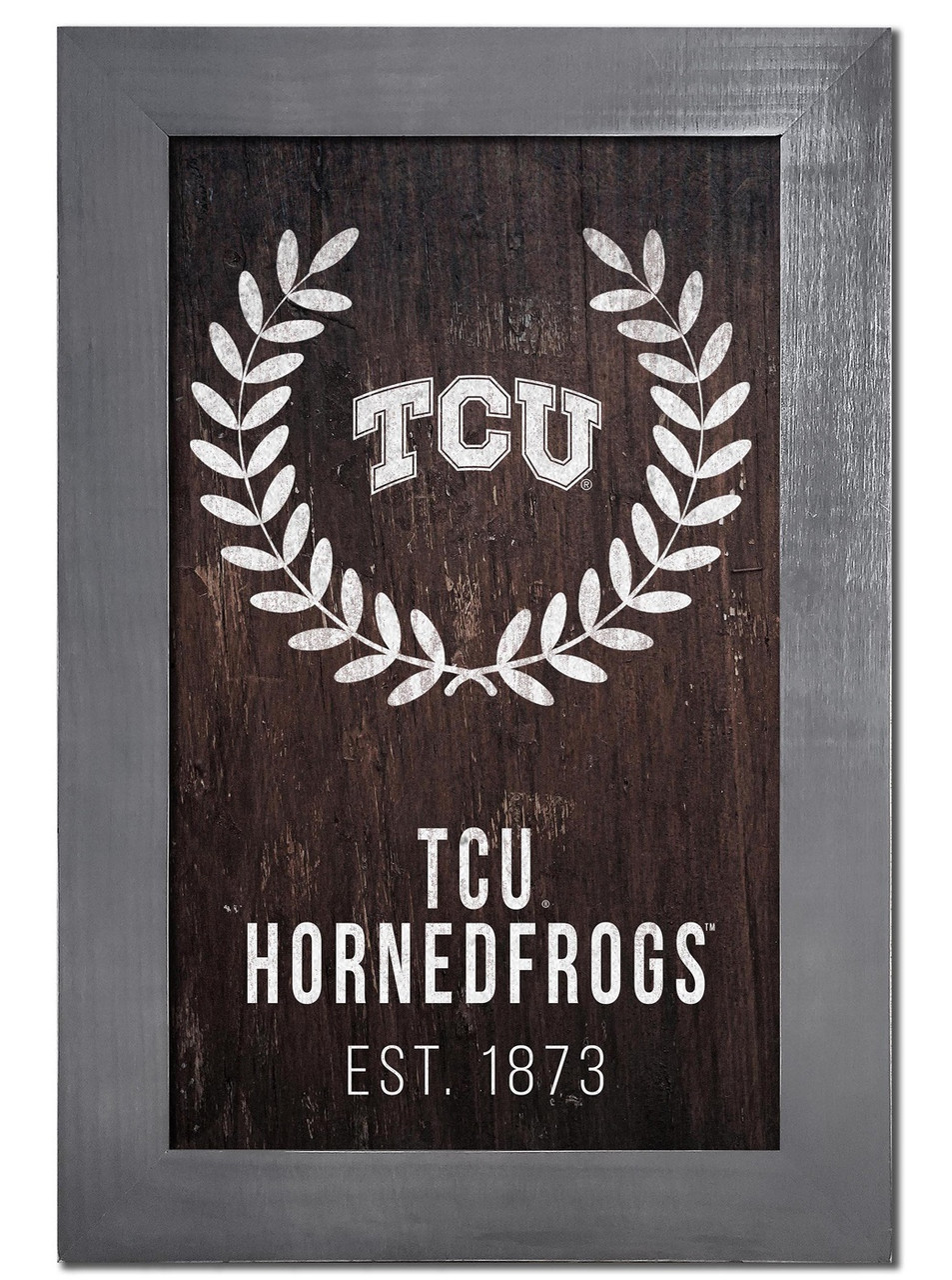 Texas Christian Horned Frogs 11" x 19" Laurel Wreath Framed Sign