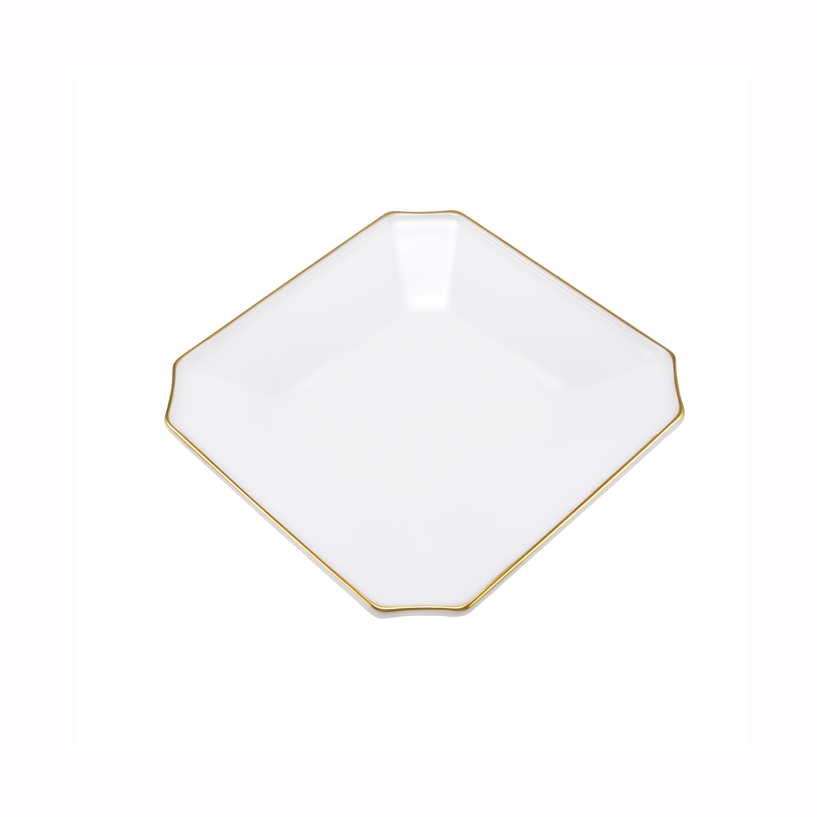 Majestic Gifts Aura-Gold White Square Plate w/ Gold rim, Set/4-7.25"