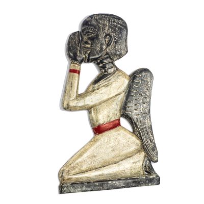 Praying Angel,'Rustic Sese Wood Angel Wall Sculpture from Ghana'