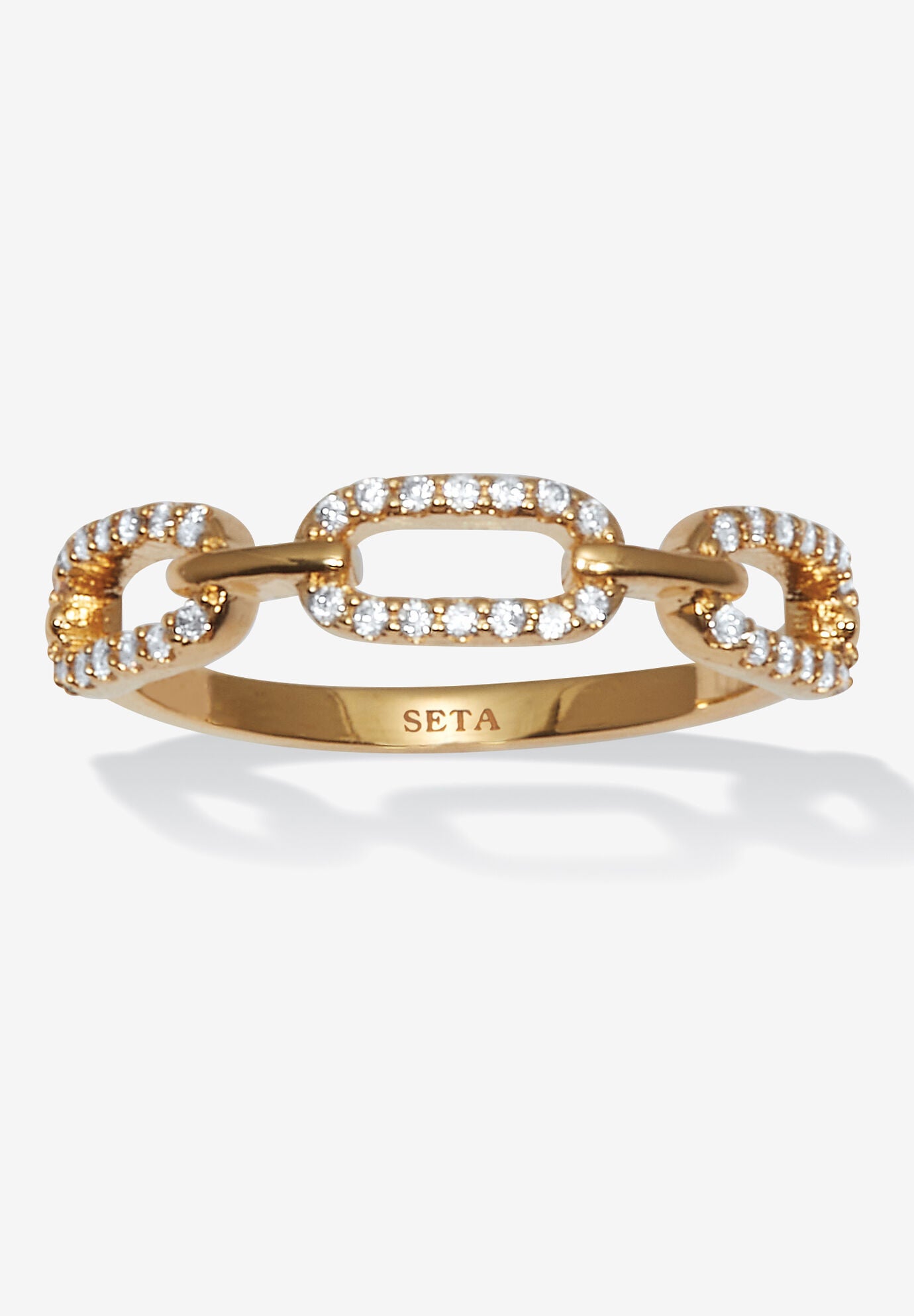 Women's .21 Tcw Round Cubic Zirconia 18K Yellow Gold-Plated Link Ring Jewelry by PalmBeach Jewelry in Gold (Size 7)