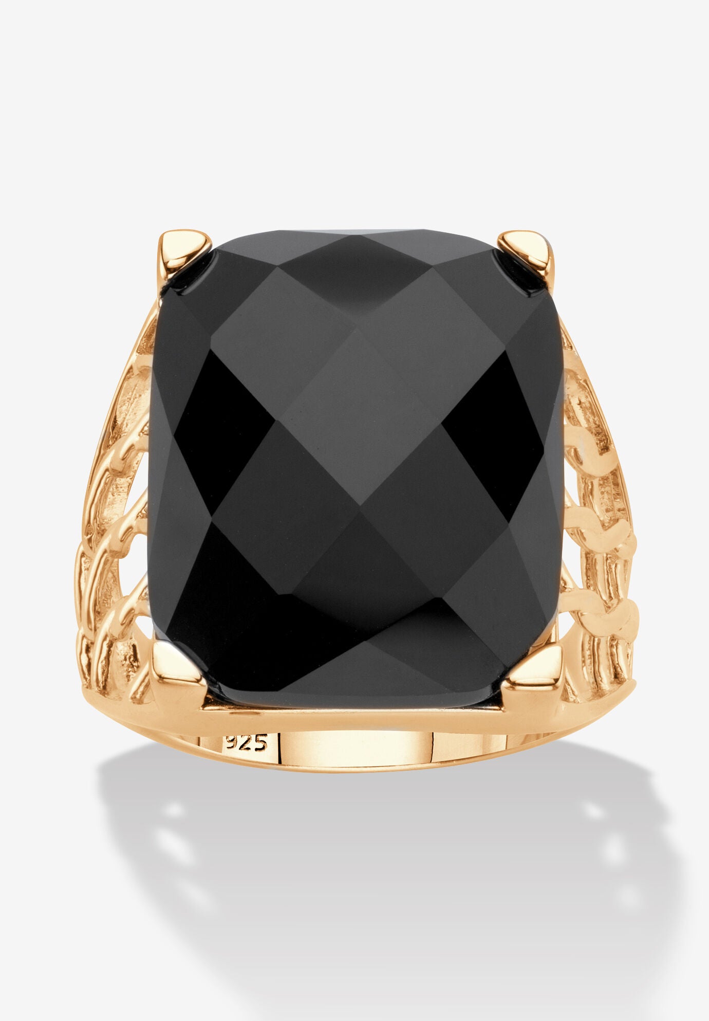 Women's Emerald Cut Genuine Black Onyx 14K Yellow Gold-Plated Sterling Silver Ring by PalmBeach Jewelry in Black (Size 9)