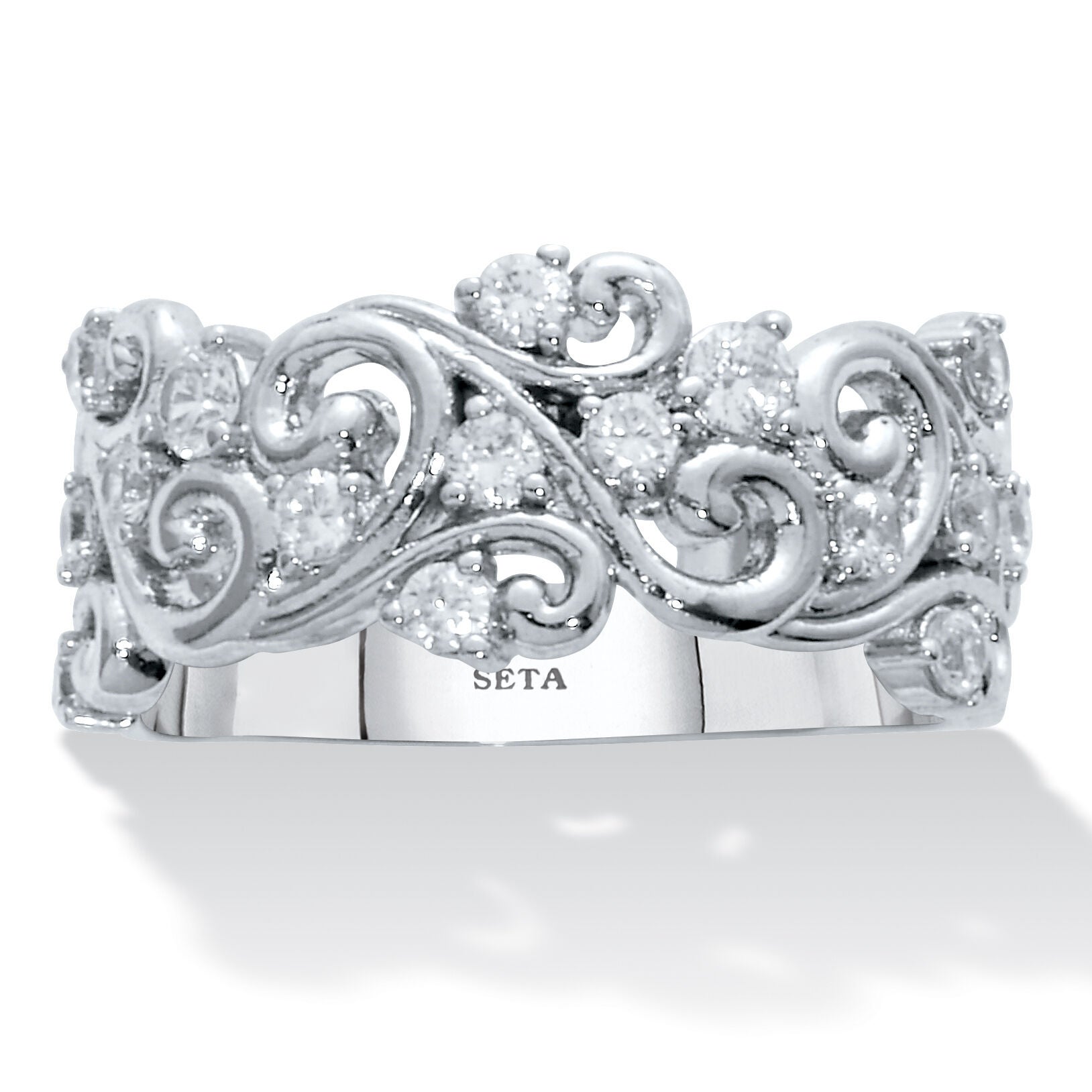 Women's .58 TCW Platinum-Plated Cubic Zirconia Vintage Ring by PalmBeach Jewelry in White (Size 8)