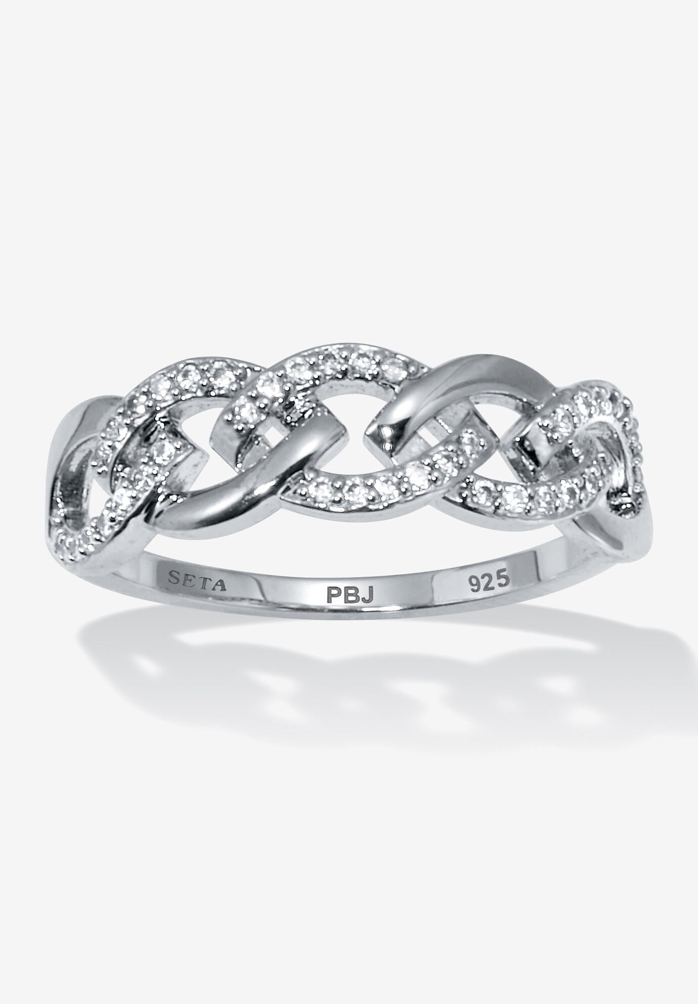 Women's .21 Tcw Round Cubic Zirconia Platinum-Plated Sterling Silver Oval Link Ring Jewelry by PalmBeach Jewelry in Silver (Size 9)