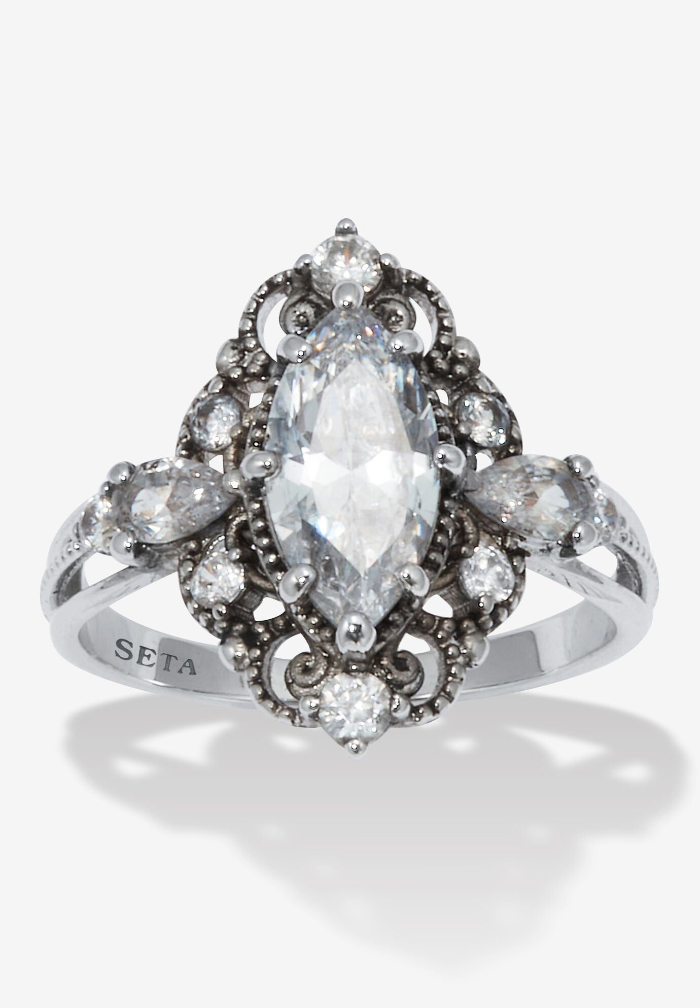 Women's 2.72 Tcw Marquise Cut Cubic Zirconia Platinum-Plated Ring by PalmBeach Jewelry in Platinum (Size 10)
