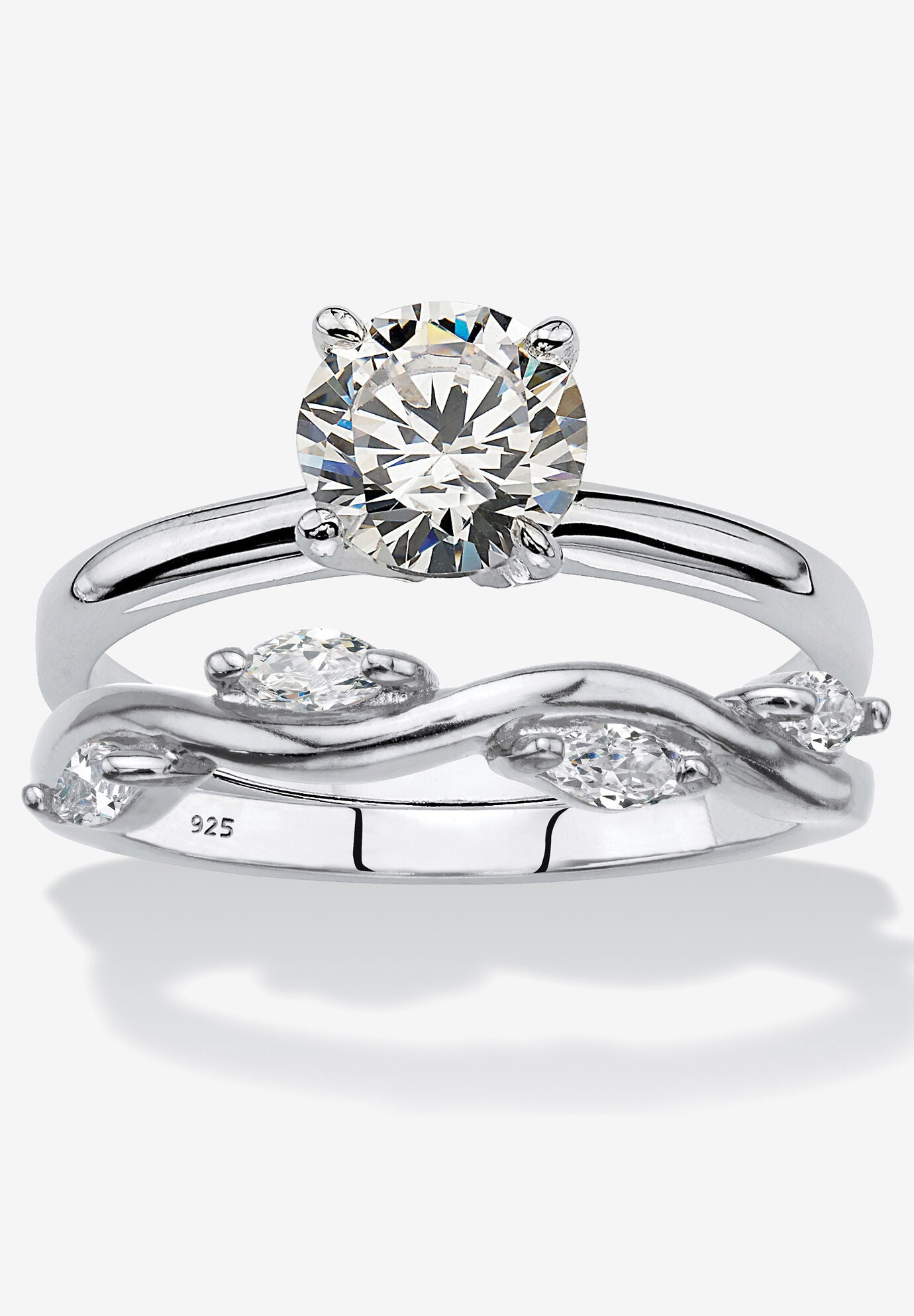 Women's 1.48 Cttw. Cubic Zirconia Sterling Silver 2-Pc. Solitaire Vine Bridal Ring Set by PalmBeach Jewelry in Silver (Size 10)
