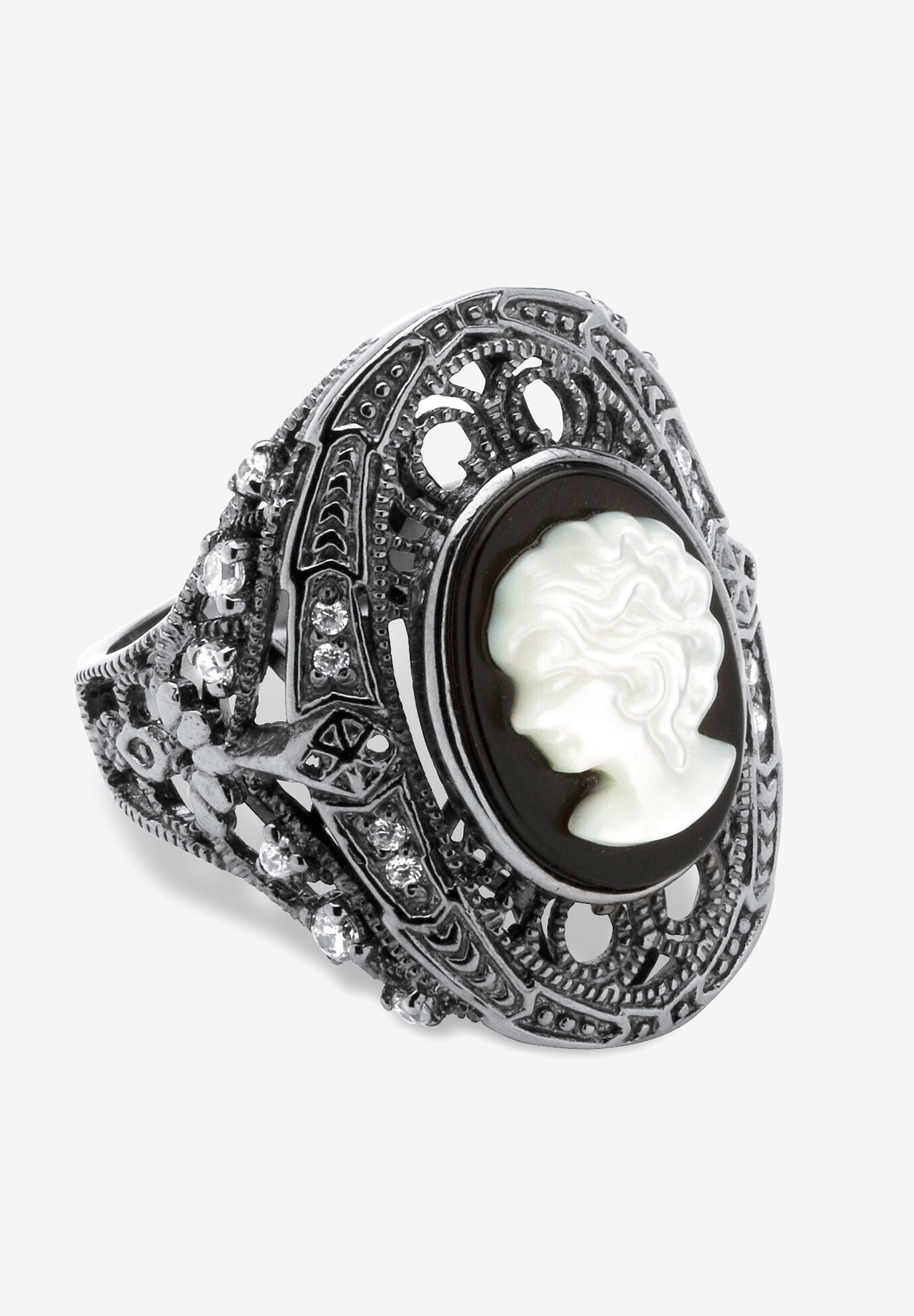 Women's Sterling Silver Onyx & Cubic Zirconia Ring by PalmBeach Jewelry in Black (Size 8)