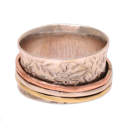Floral Rush,'Floral Sterling Silver Spinner Ring from India'