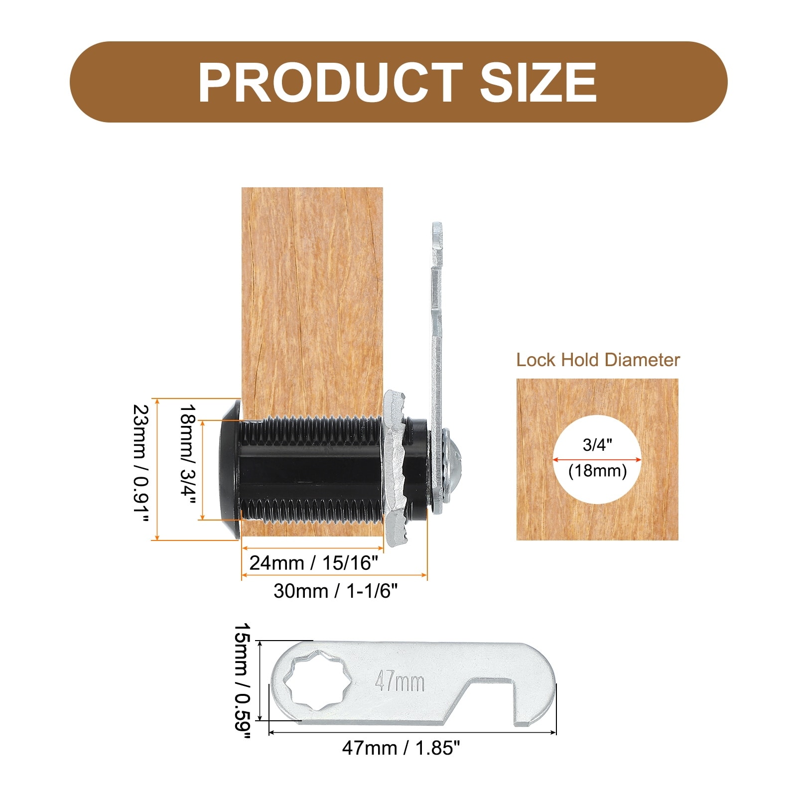 Cabinet Drawer Locks with Keys Keyed Different Zinc Alloy Security Lock Cylinder Cam for Door Cupboard Household Mailbox - Black