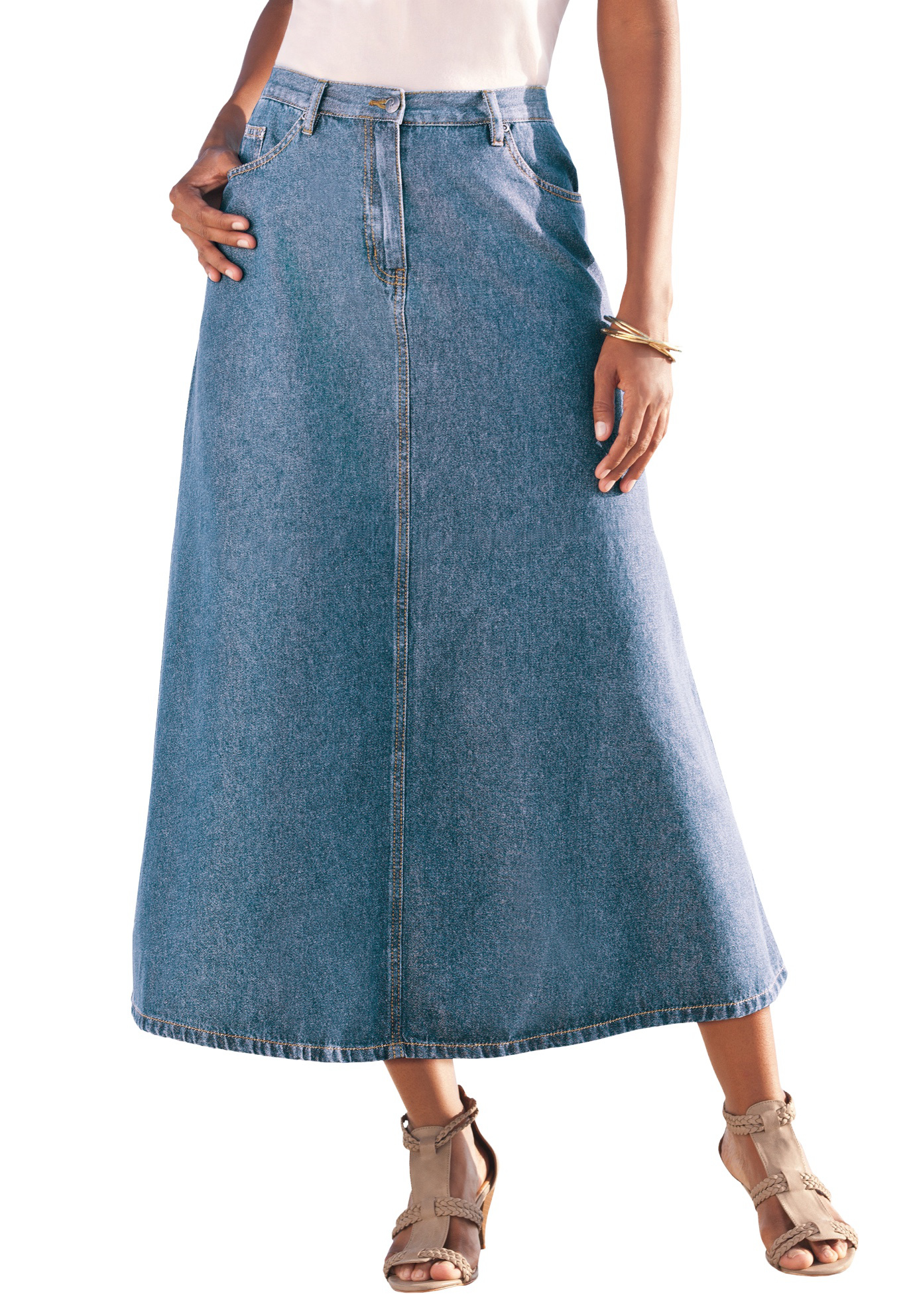 Plus Size Women's Plus Size Easy-Wear A-Line Skirt by Roaman's in Light Stonewash (Size 14 W) 100% Cotton Long Length