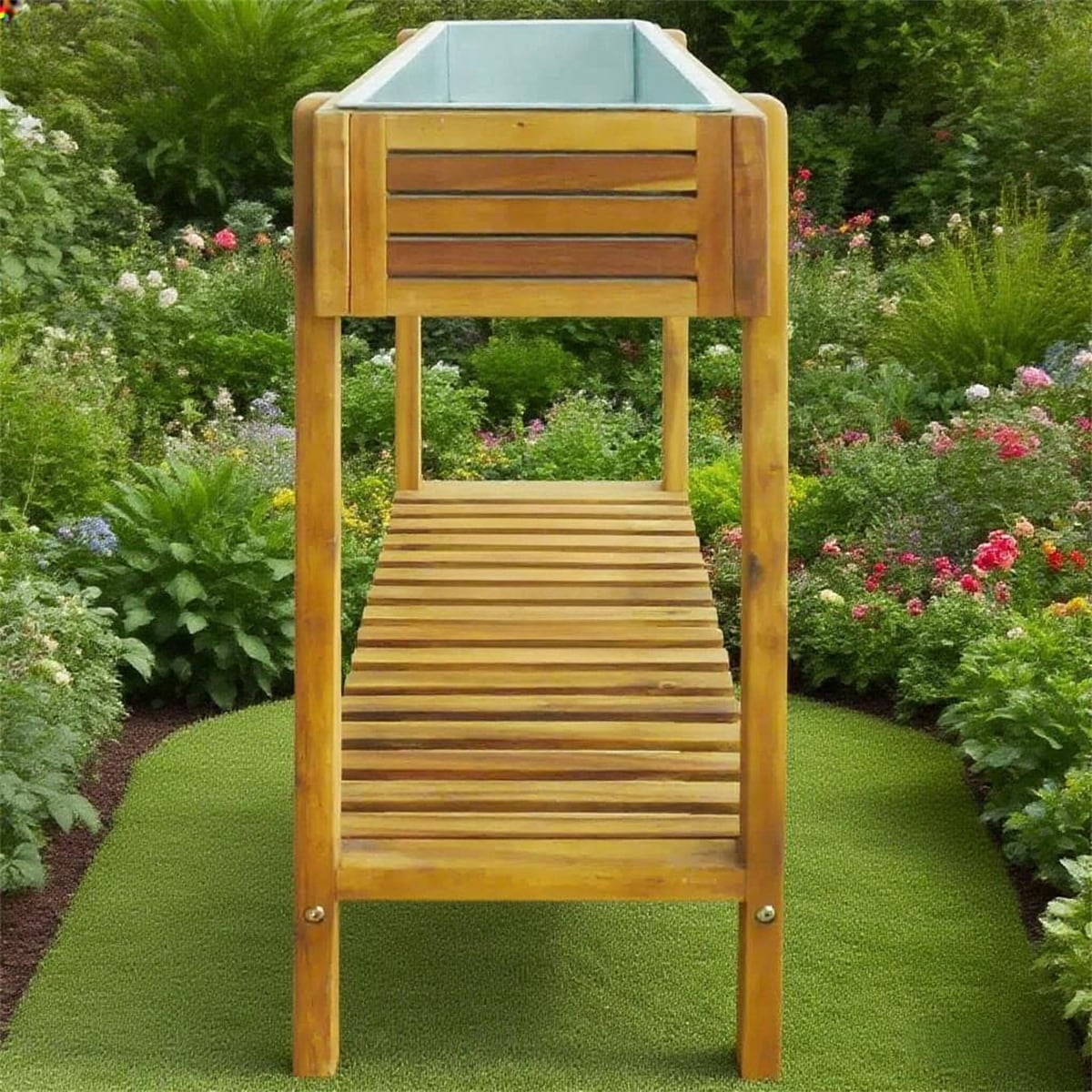 Natural Acacia Wood Raised Garden Bed with Zinc Liner and Bottom Shelf - 9.84"W x 35.43"D x 29.52”H