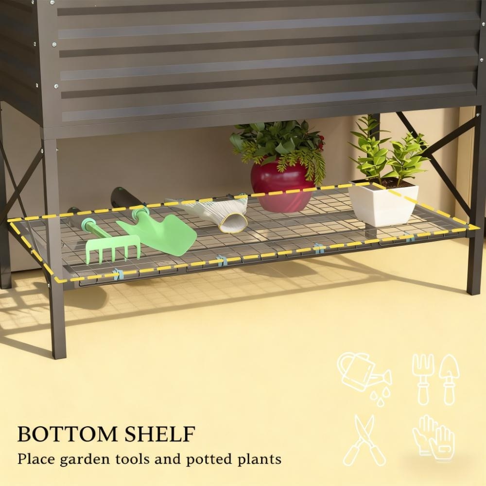 Metal Planter Box with Storage Shelf Galvanized Raised Garden Bed