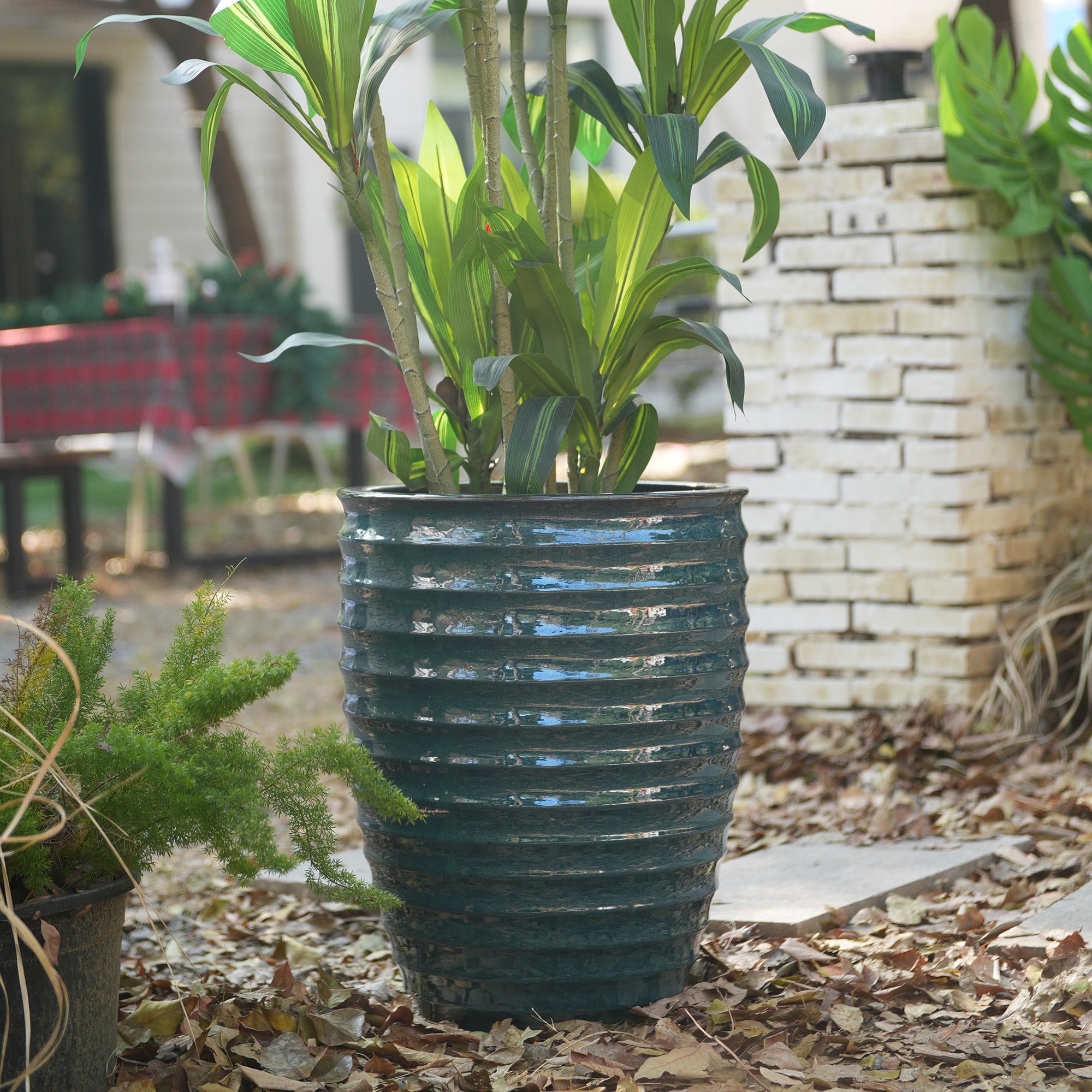 Handmade Ceramic Planter, 17 Inch Diameter, 1 Piece, Horizontal Ripples Pattern